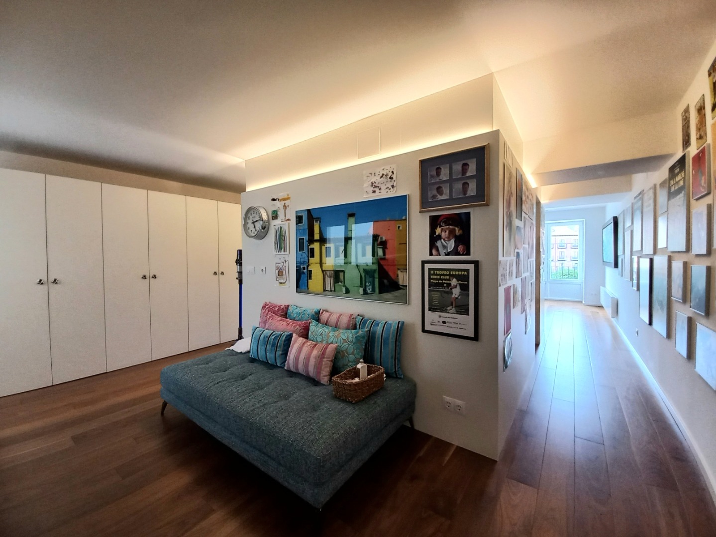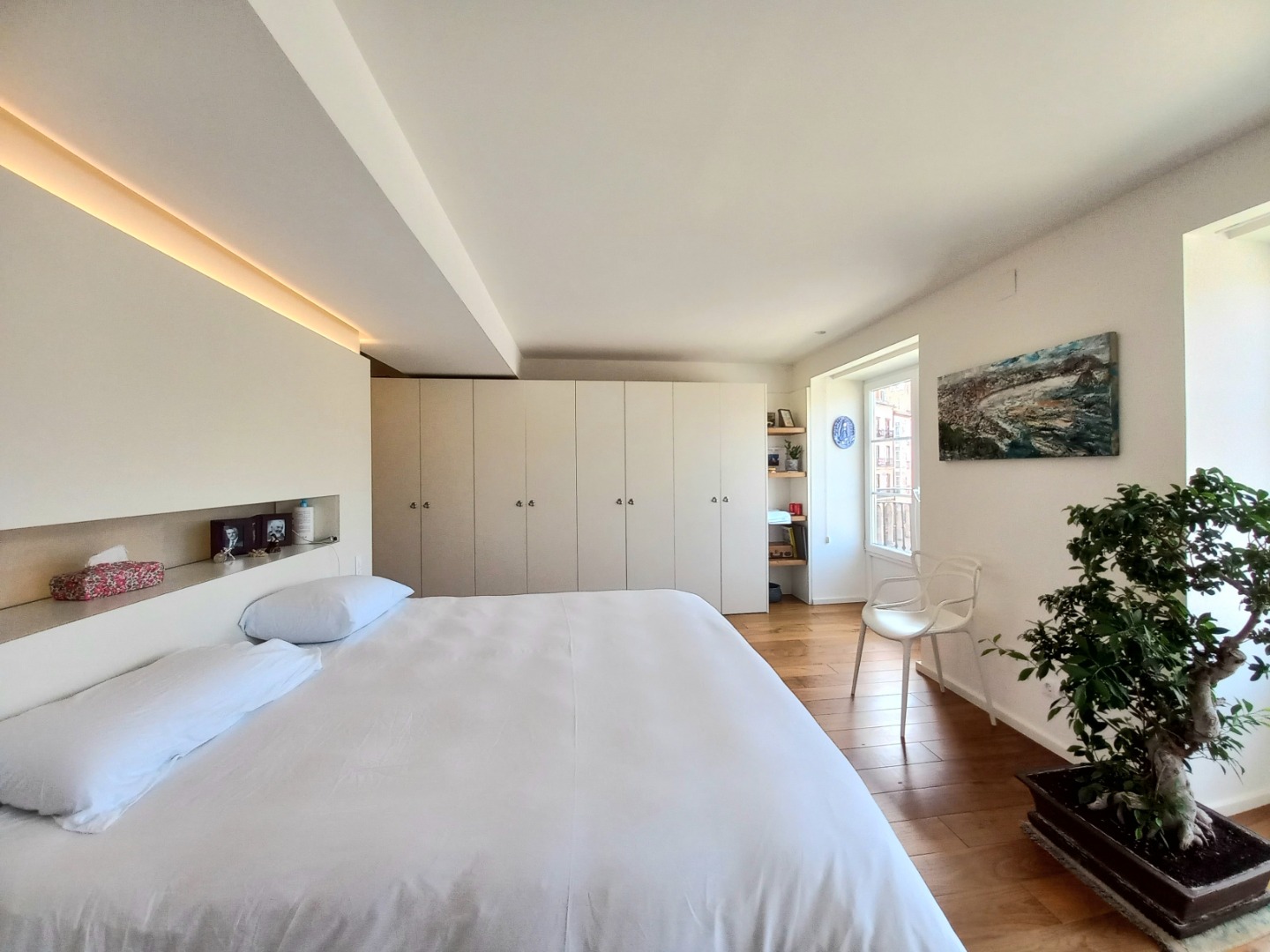Ya en su zona de descanso está su dormitorio principal, flanqueado por dos grandes balcones y con un magnífico armario empotrado vestidor.