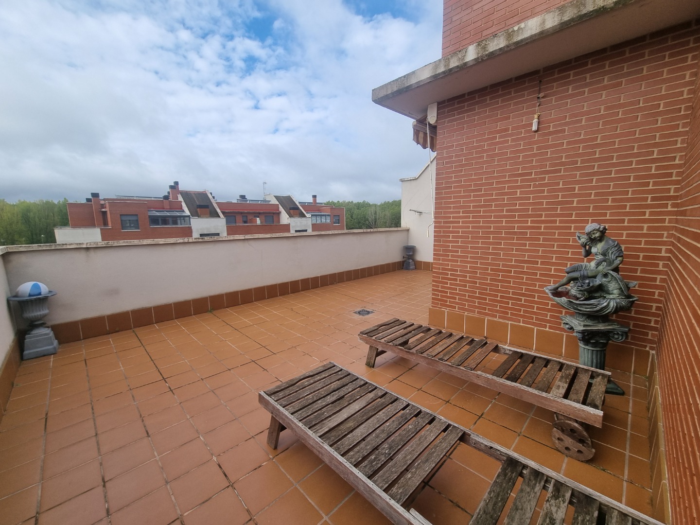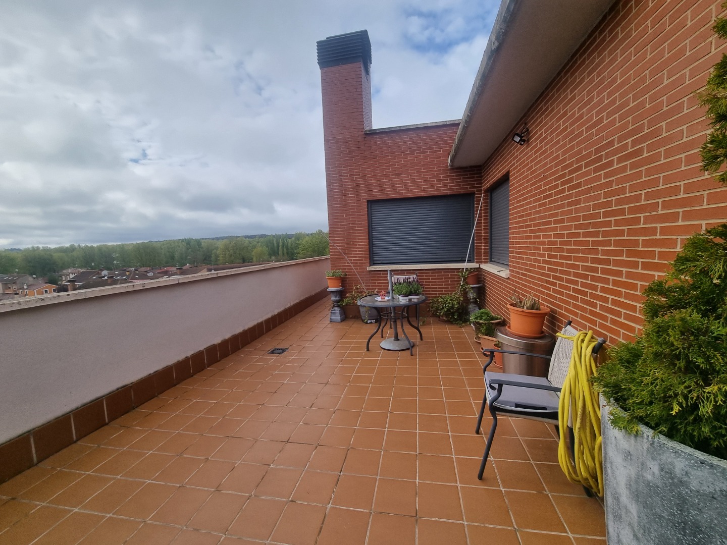 LUIS ROSALES. Fantástico ático en una zona tranquila con fácil aparcamiento y rodeada de zonas verdes para el disfrute suyo y el de su familia. Le ofrecemos esta vivienda para entrar a vivir mañana mismo de tres habitaciones con armarios empotrados y salida a una estupenda terraza descubierta de unos 100 metros que rodea a toda la vivienda ,con diferentes salidas a ella, salón-comedor con fantásticas vistas, cocina totalmente amueblada y equipada con salida a un office cubierto en la terraza con estufa de pellets, dos baños completos, uno integrado en la habitación principal tipo suite y el otro fuera para dar servicio al resto de la casa.