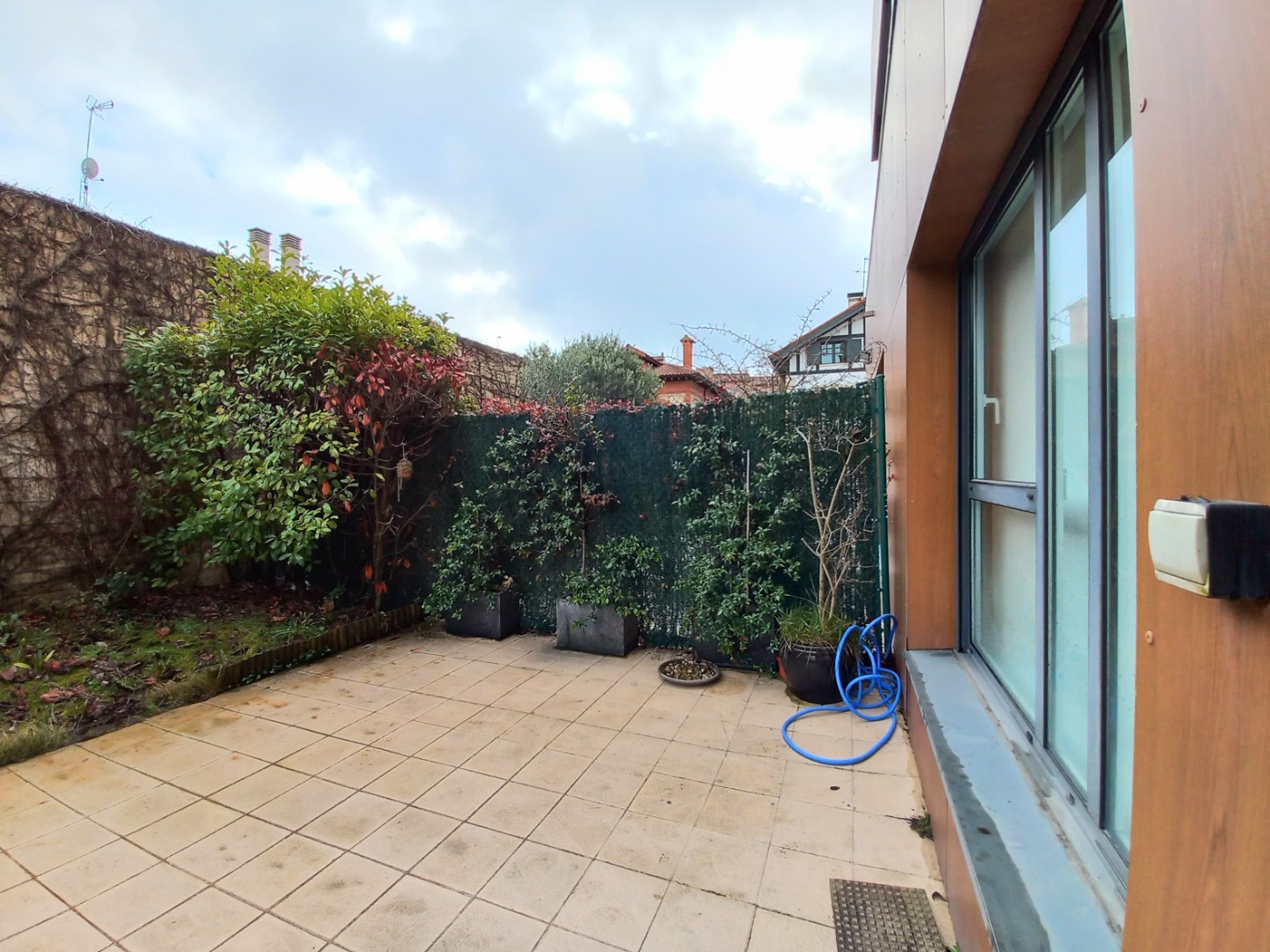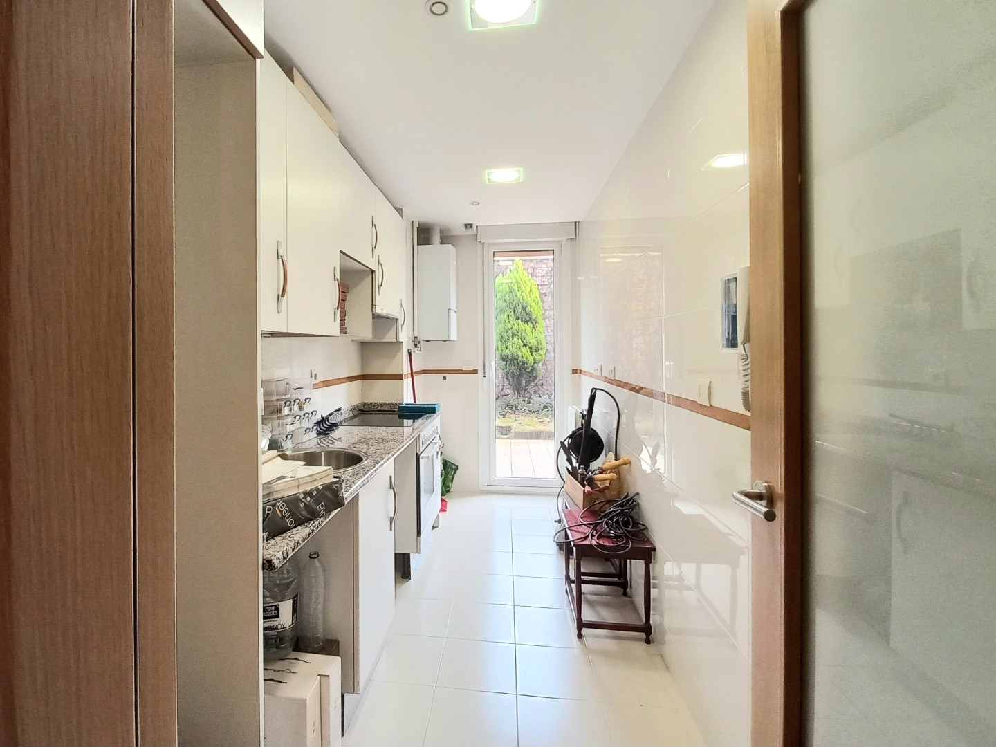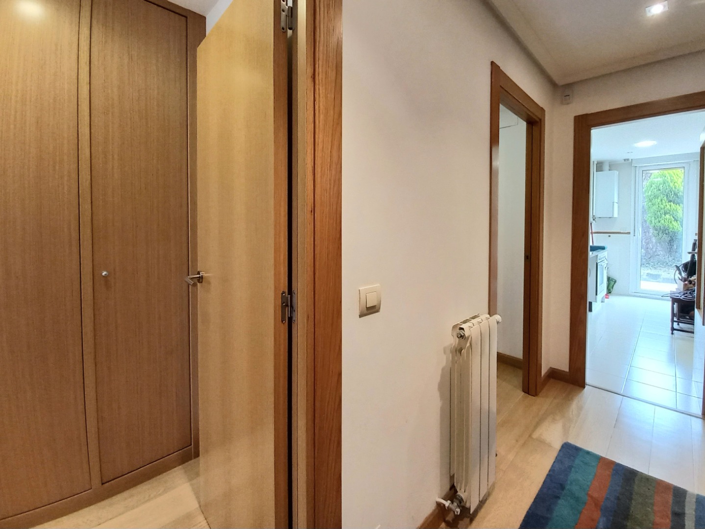 En la planta de acceso, a la que accedemos desde el recibidor que cuenta con un baño de cortesía, y nos dirige a área social que cuenta con un gran salón comedor con un gran ventanal que llena de luminosidad y calidez el espacio. Junto a él se ubica la moderna cocina, con salida al impresionante jardín privado de unos 25m² aprox que goza de muy buena orientación e intimidad. Desde este podemos llegar través de un coqueto patio inglés mediante unas cómodas escaleras al espacio polivalente donde podrá diseñar por ejemplo, merendero, estudio u otros.