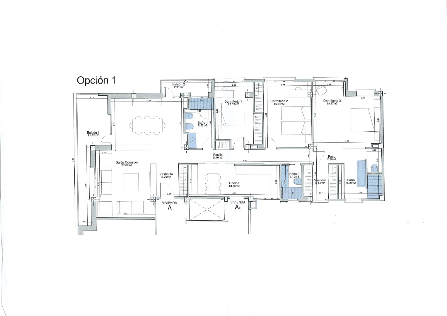 Consta de un salón doble, 5 dormitorios amplios, 2 baños, cocina, 2 terrazas y servicios centrales con contador individual