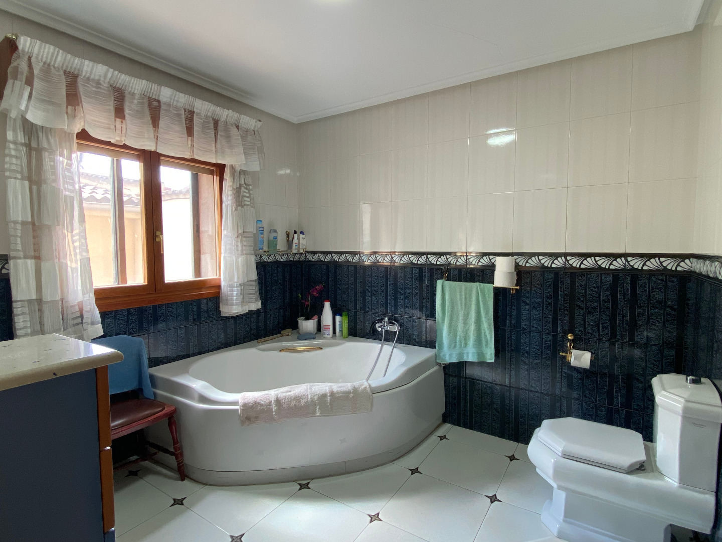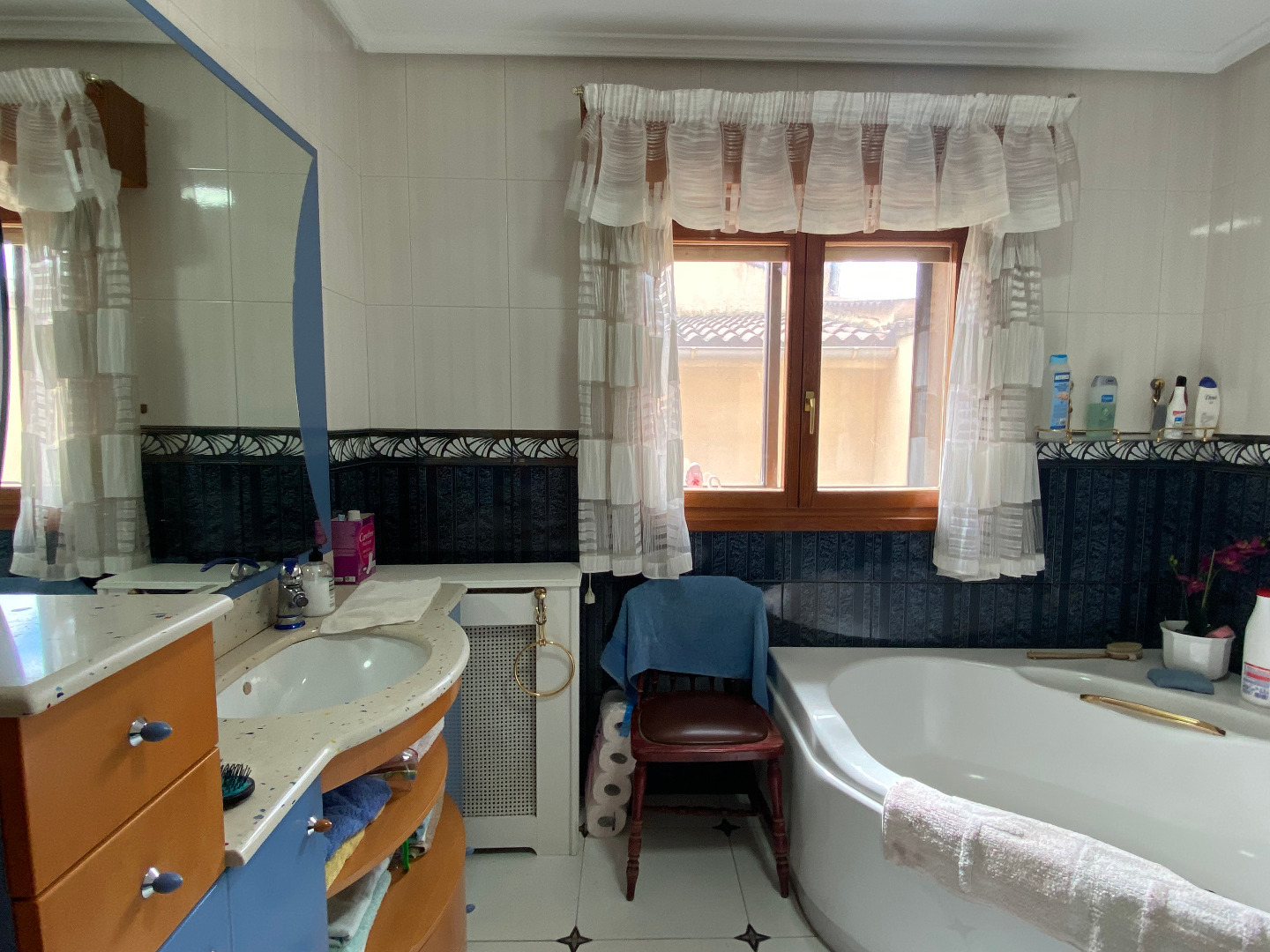 El inmueble se distribuye en un patio-jardín frontal, hall, cocina muy grande con office, salón comedor, baño grande con bañera de hidromasaje y ventana y 4 amplios dormitorios