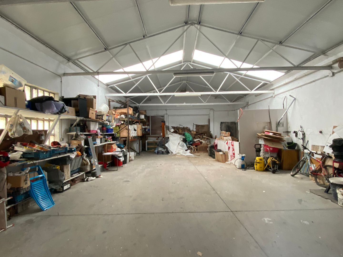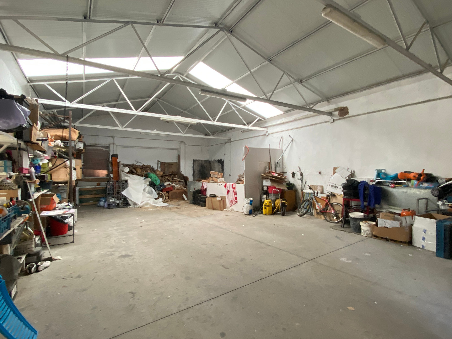 Parte trasera con patio, un aseo y zona de calderas y el espectacular garaje-nave de 345m2 para meter varios vehículos o destinarlo a taller... etc.