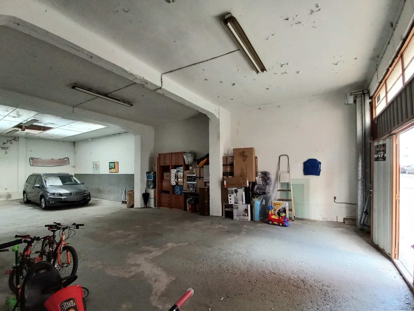 Dispone en su acceso de un gran portón metálico de unos seis metros, ocupando su fachada en totalidad. Además, cuenta con vado en vigor.