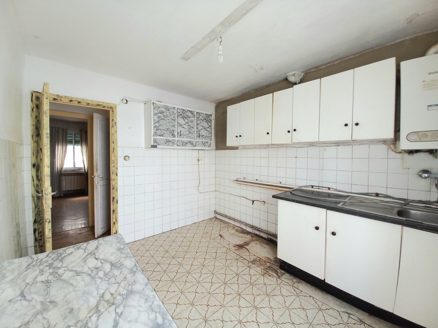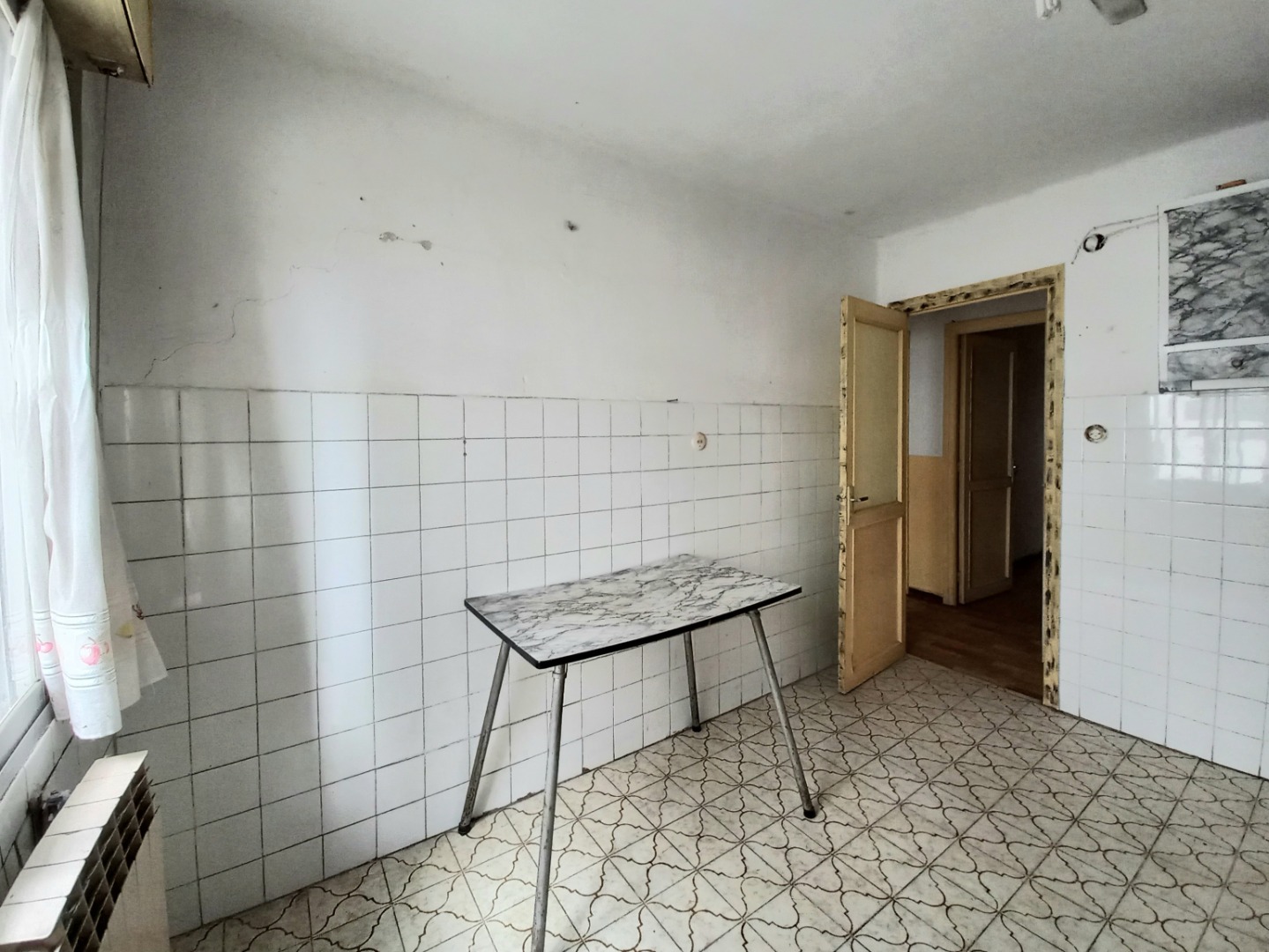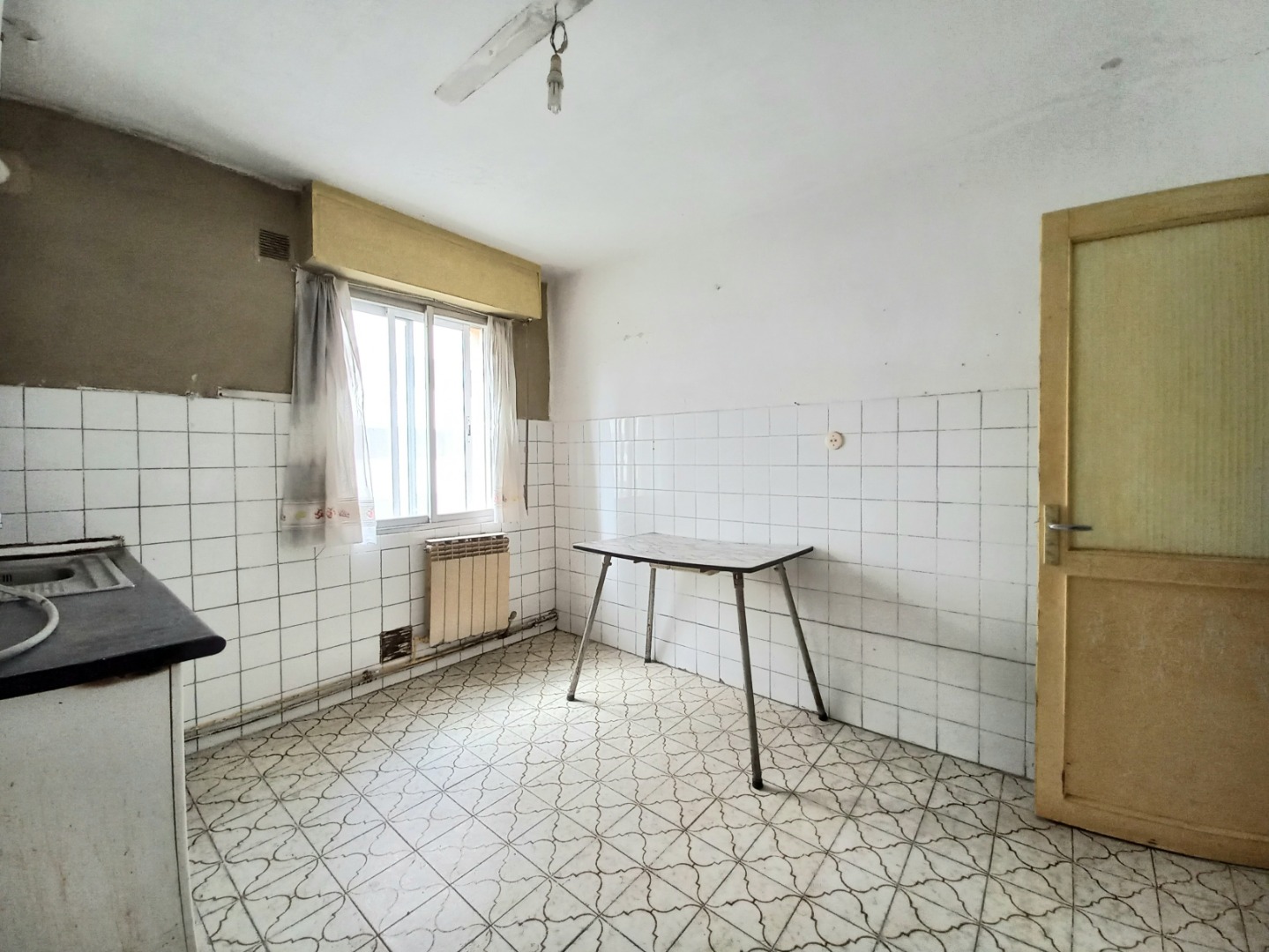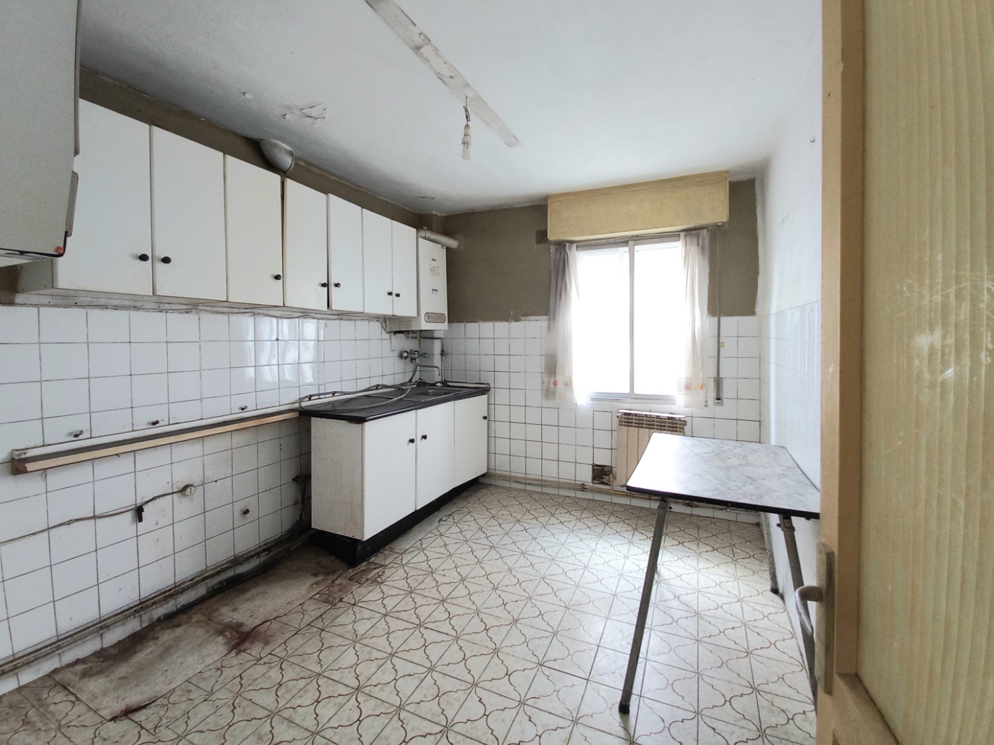 Desde su noble recibidor nos dirigimos hacia la zona de día del piso. Un espacioso salón comedor junto su cocina lo forman. Esta última, dispone de una funcional despensa.