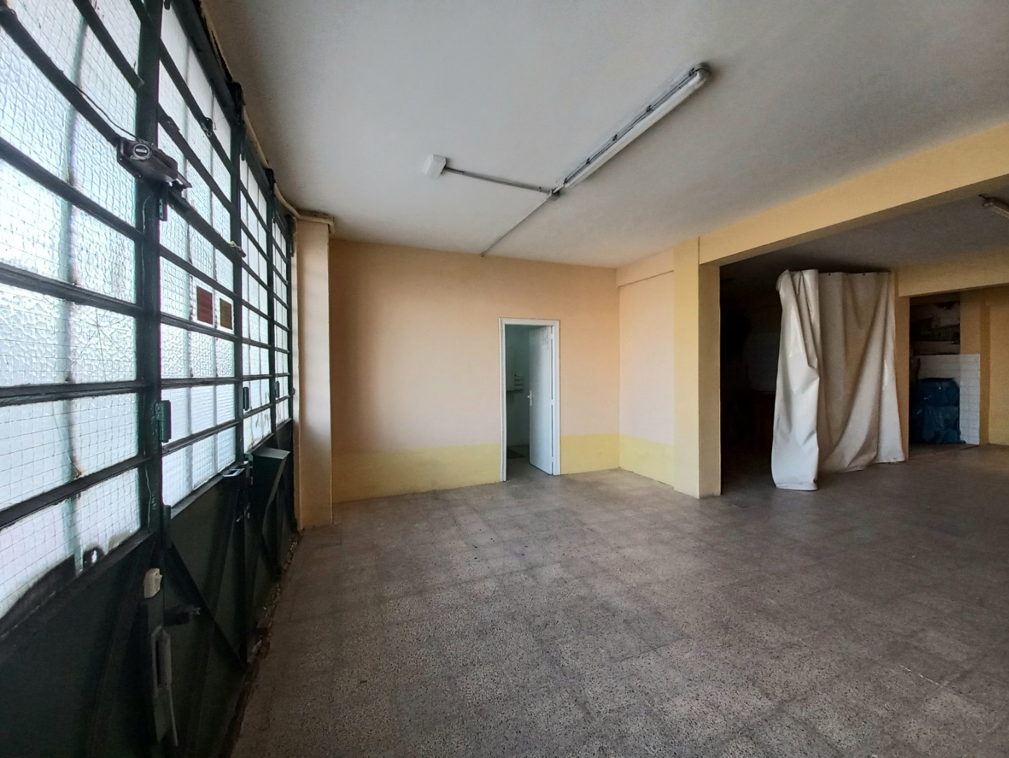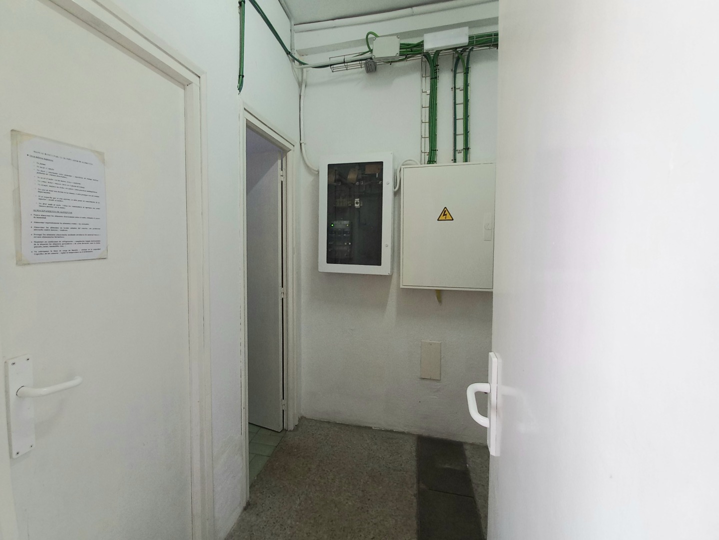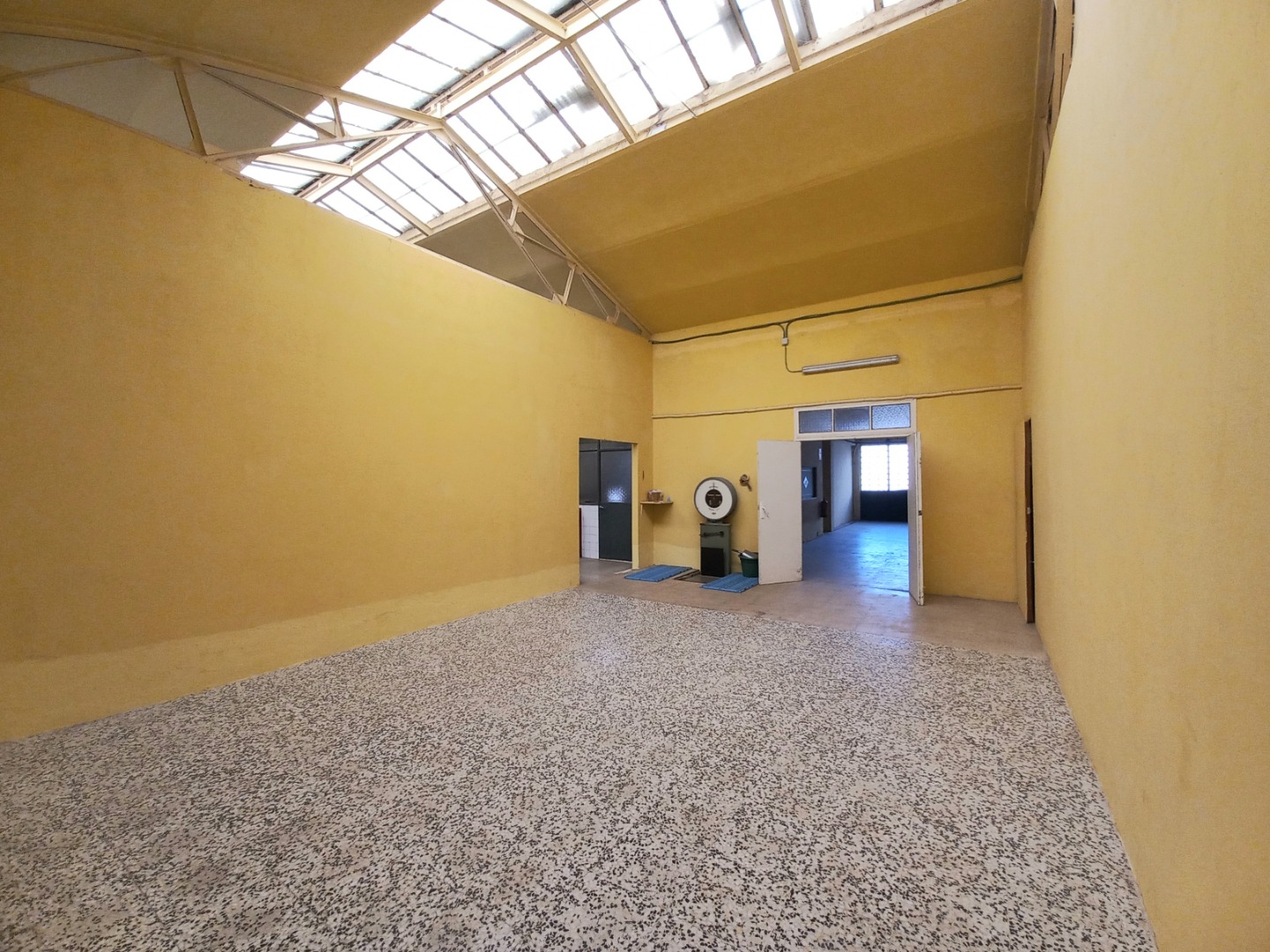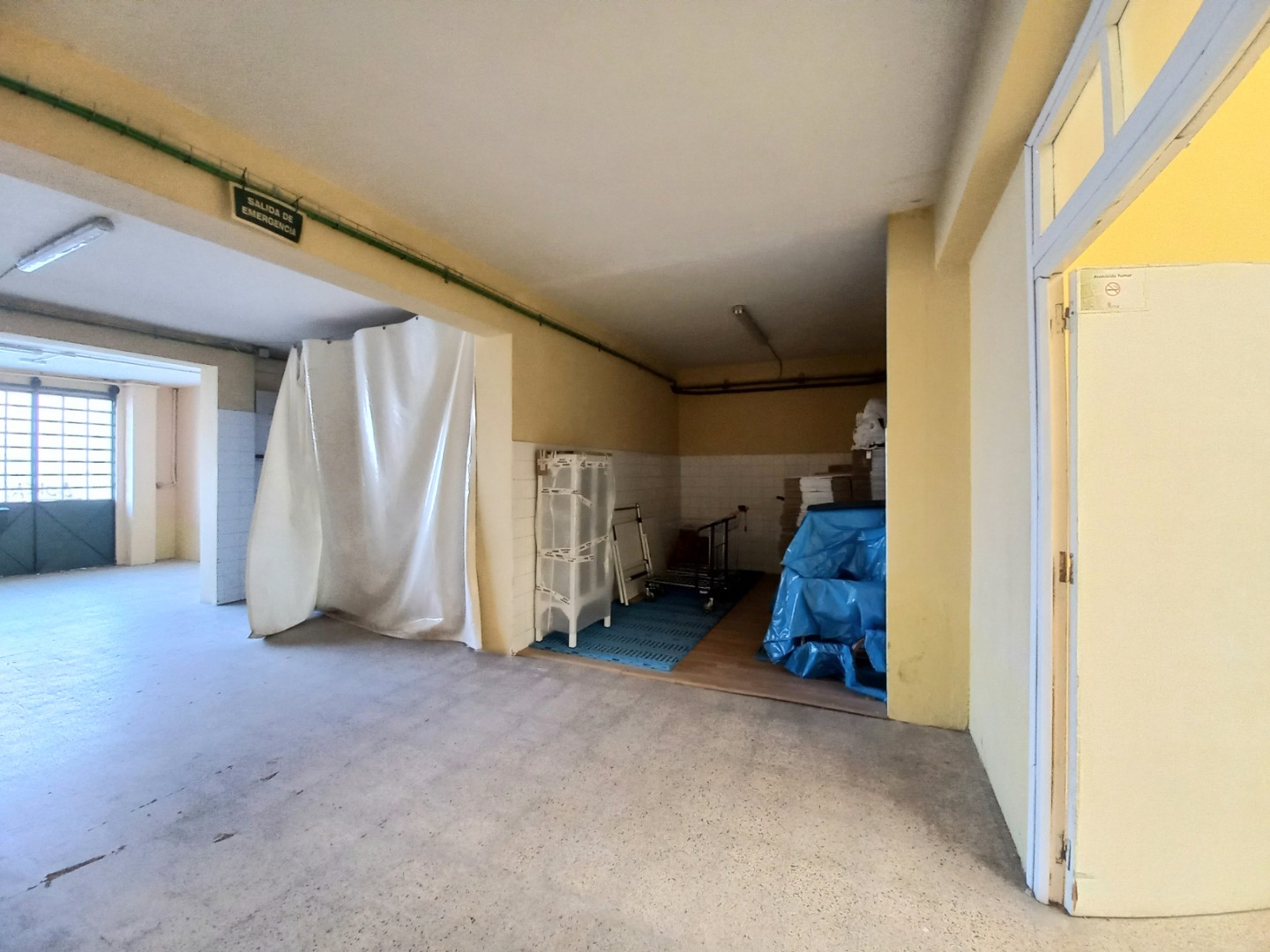 Dispone en su acceso de un gran portón metálico de unos seis metros, ocupando su fachada en totalidad. También cuenta con salida de humos.