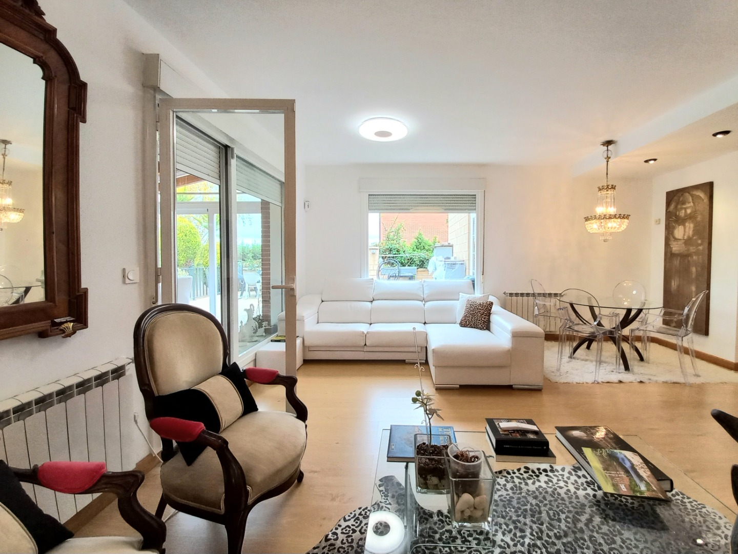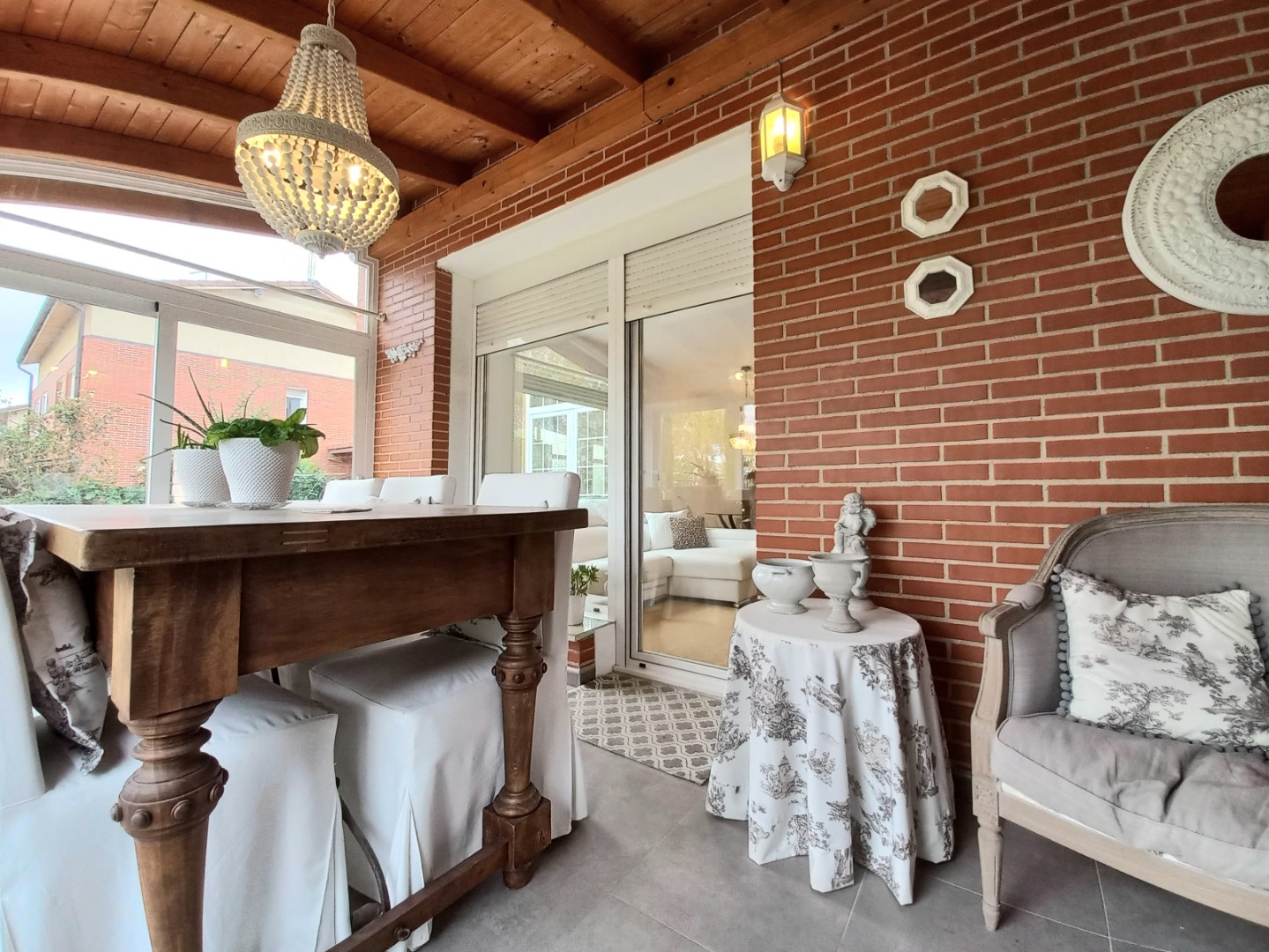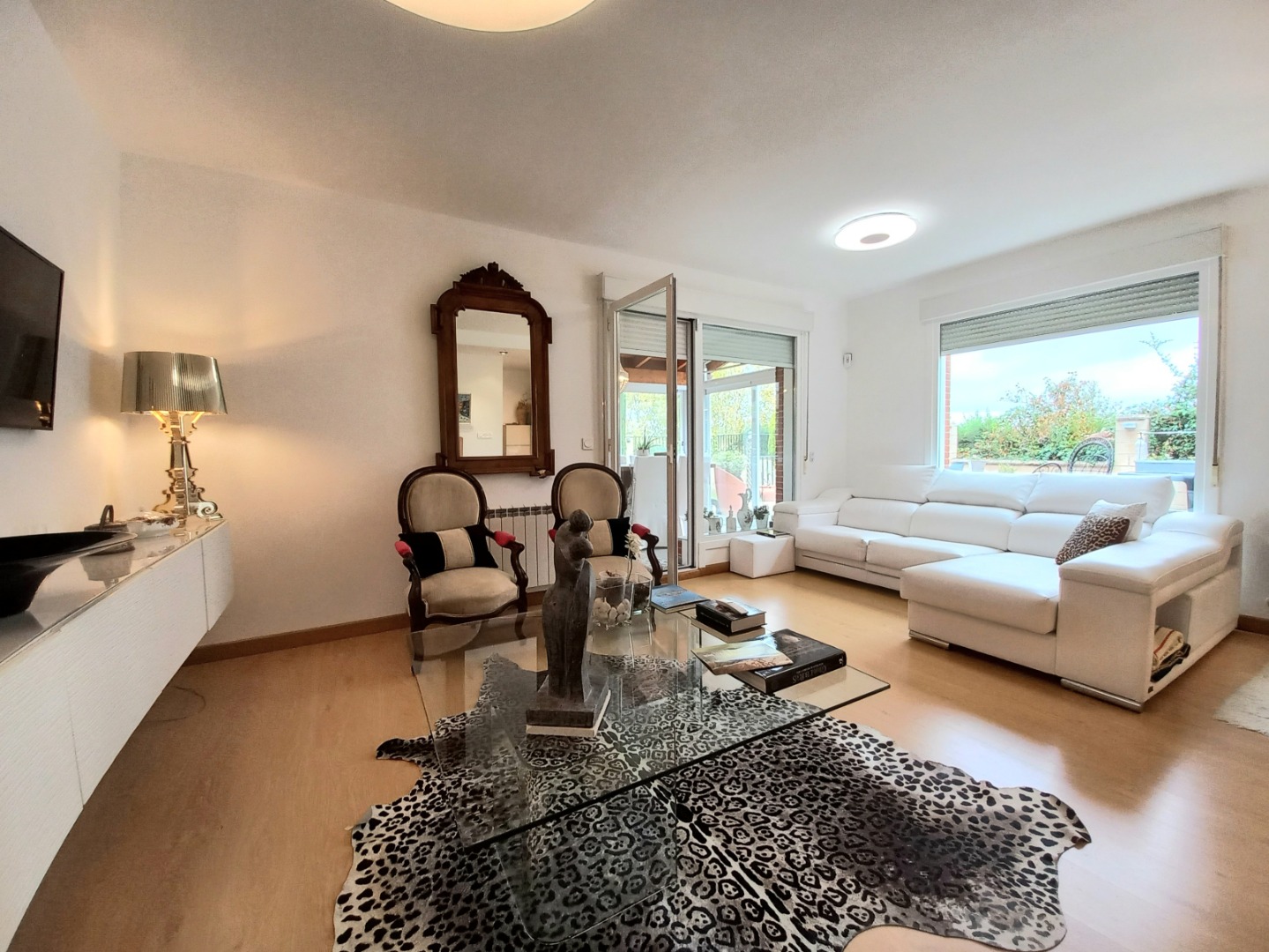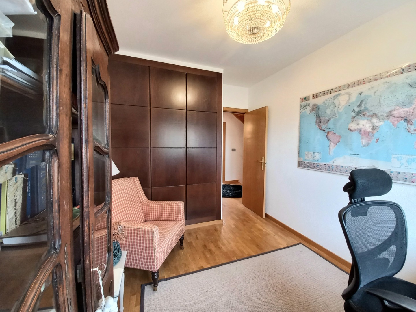 En la planta principal, un recibidor central al que se accede desde un práctico porche acristalado, organiza el espacio. Aquí se encuentran el salón comedor con una chimenea de pellets, una cocina totalmente equipada con electrodomésticos de alta gama, office y aseo. Desde el salón pasaremos a su estupendo porche principal, ideal para disfrutar de inolvidables veladas.
