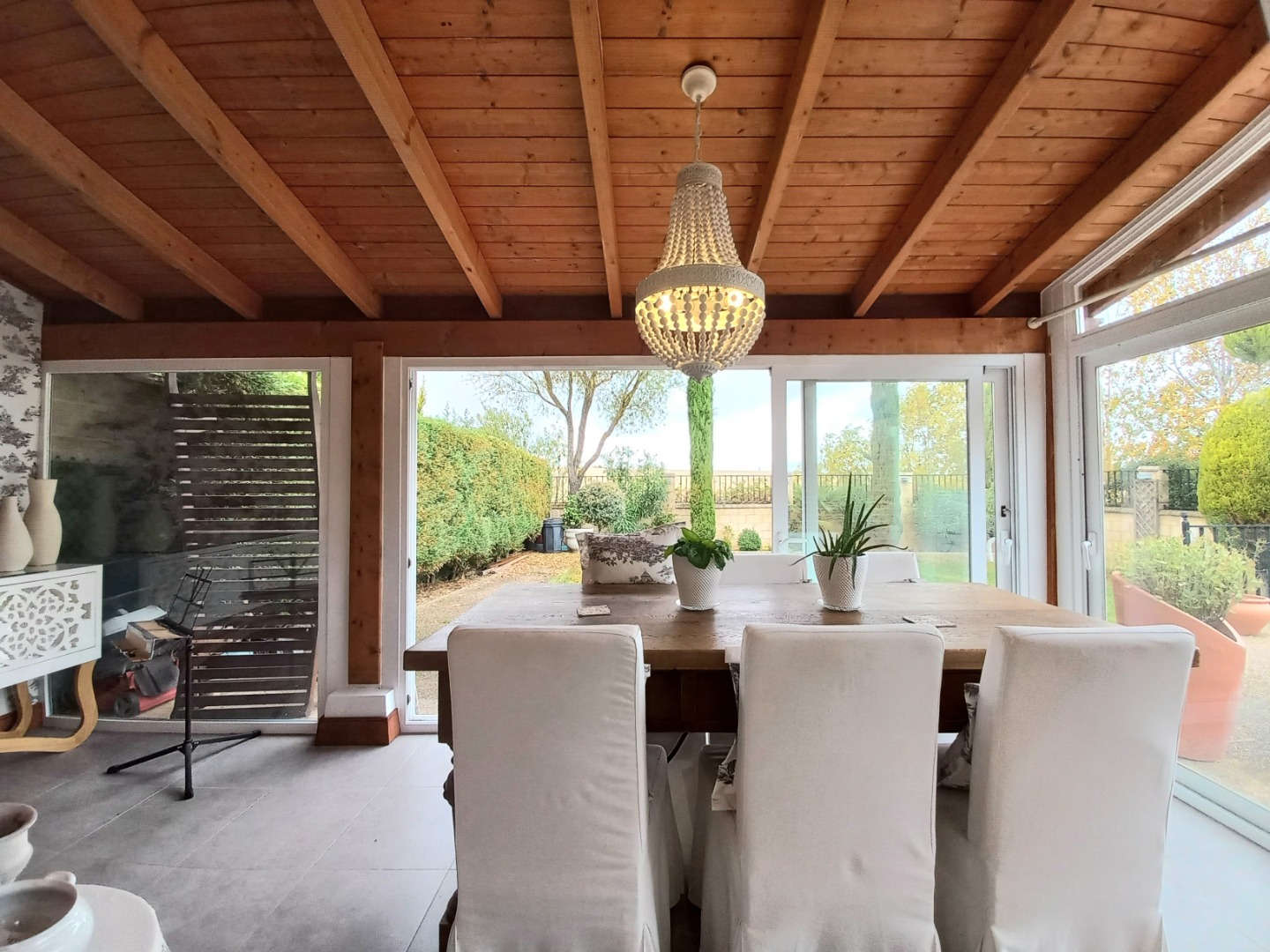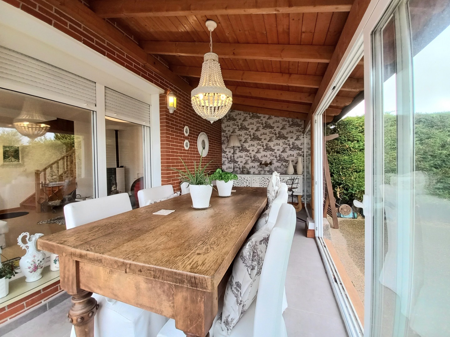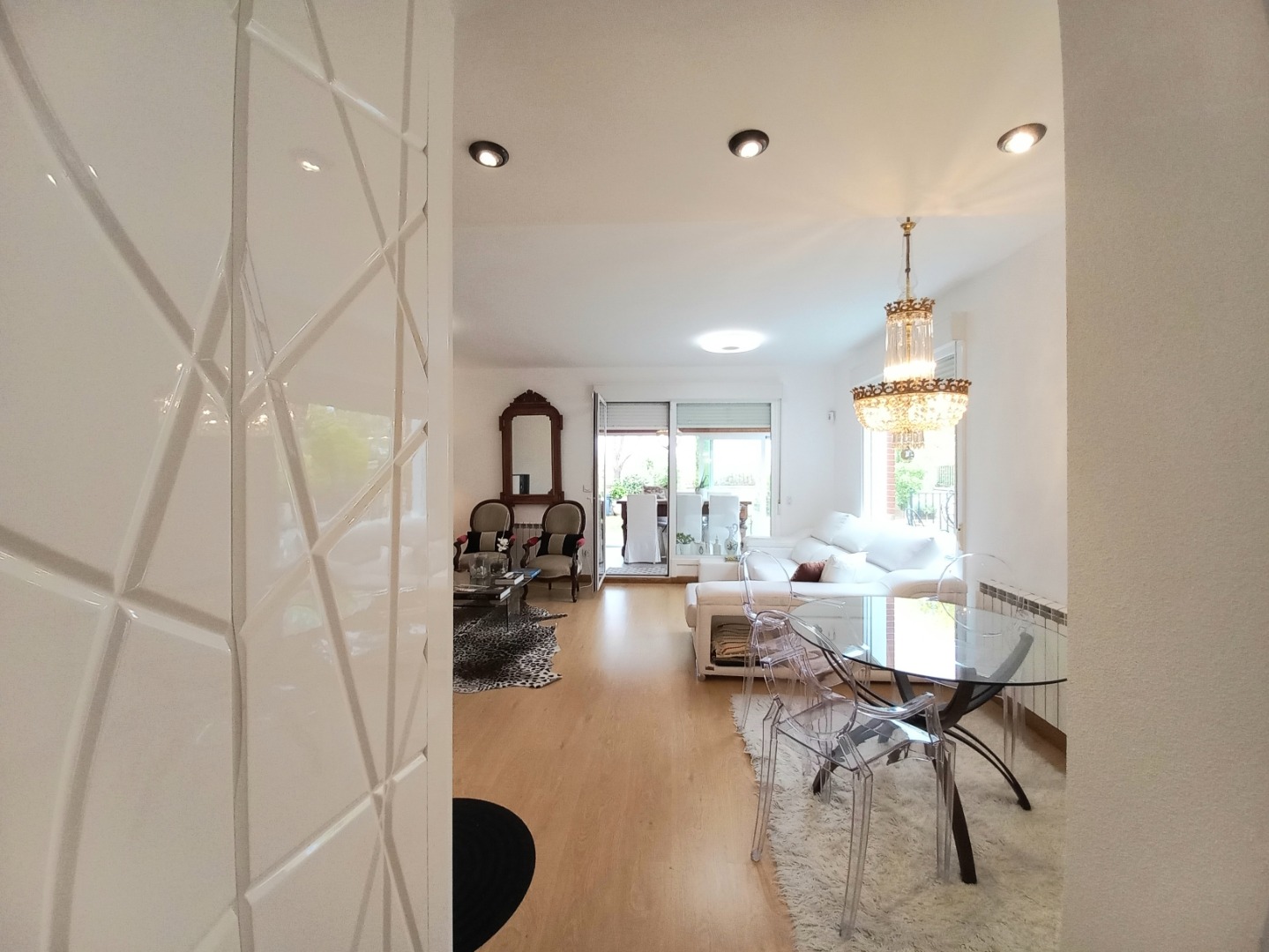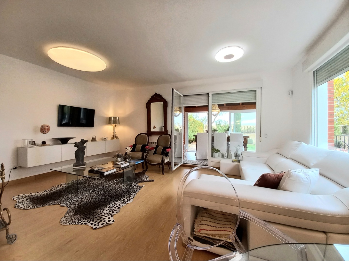 En la planta principal, un recibidor central al que se accede desde un práctico porche acristalado, organiza el espacio. Aquí se encuentran el salón comedor con una chimenea de pellets, una cocina totalmente equipada con electrodomésticos de alta gama, office y aseo. Desde el salón pasaremos a su estupendo porche principal, ideal para disfrutar de inolvidables veladas.