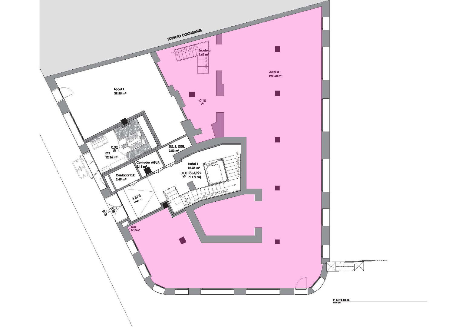 El inmueble se distribuye en dos niveles, con una planta principal muy diáfana que ofrece amplias posibilidades de distribución, y una planta sótano de 78,53 m², perfecta para uso de almacén, archivo o zona auxiliar.