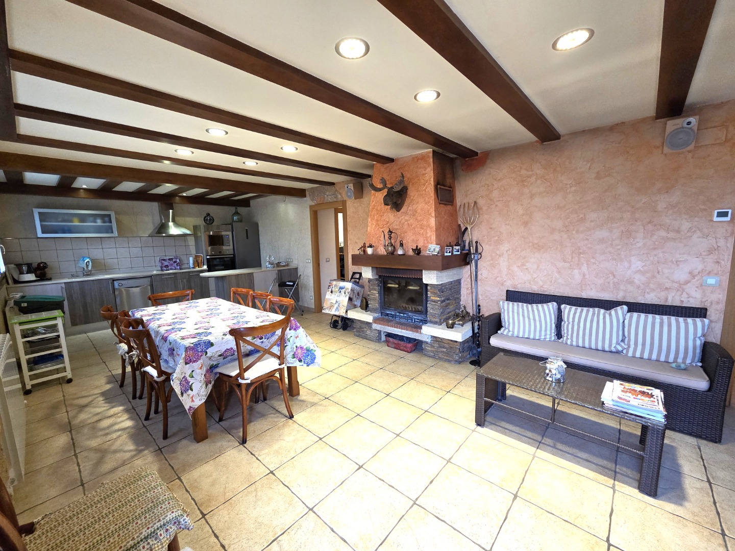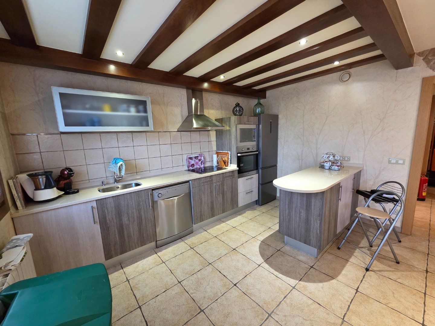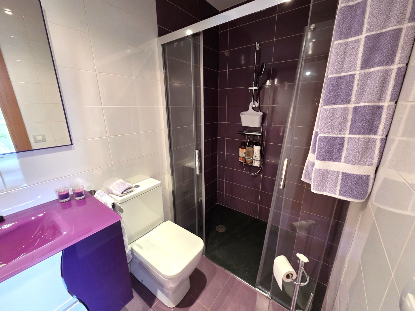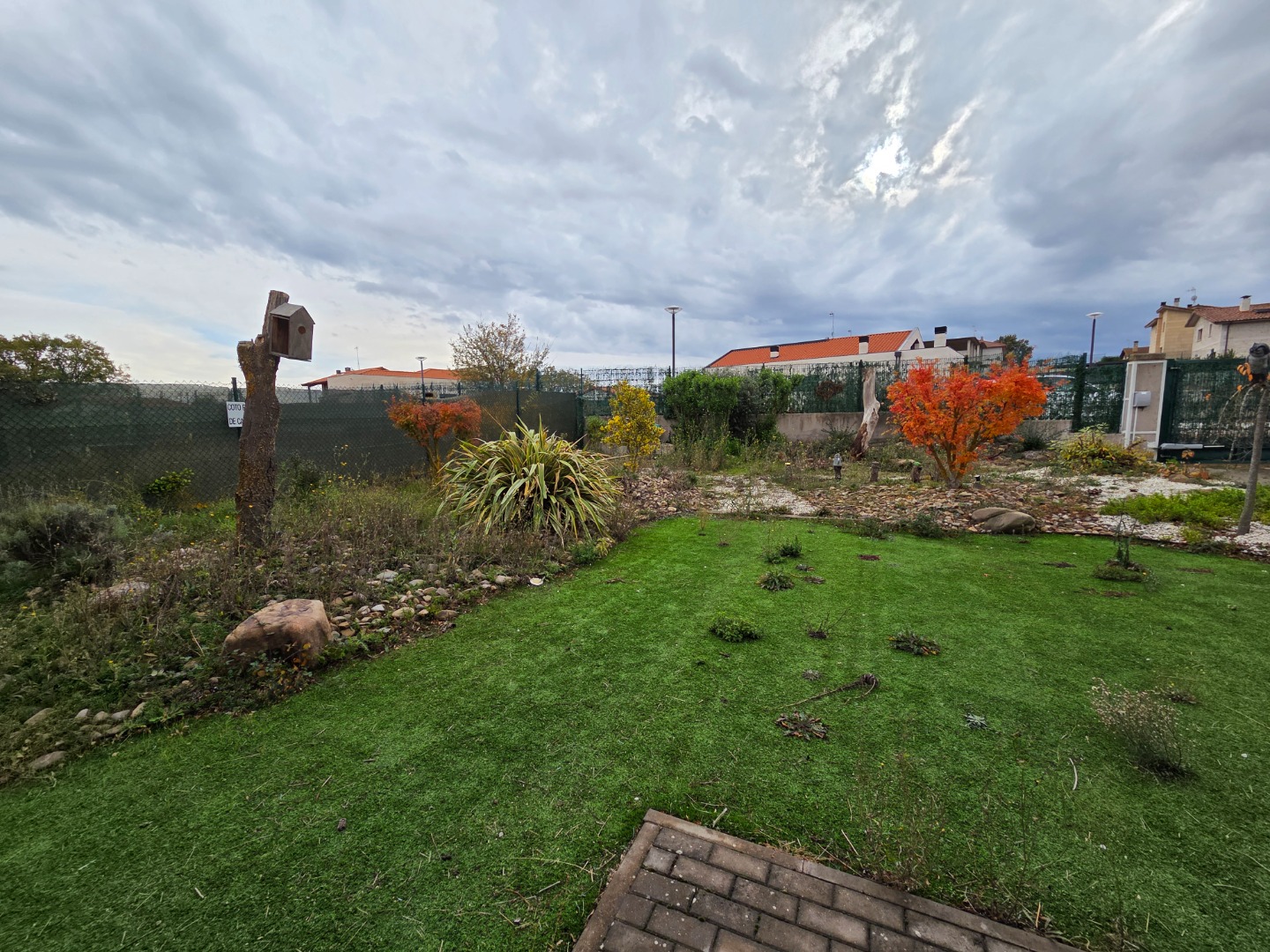 En la parte de abajo de la parcela nos encontramos con un solárium y otra zona destinada a bodega-merendero con chimenea, cocina amueblada y equipada, habitación grande y baño completo con plato de ducha, además de un trastero y sala de calderas de pellets o leña.