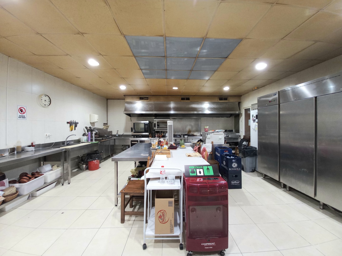 - Cocina con maquinaria hostelera, almacenamiento en frío y aparatos complementarios.