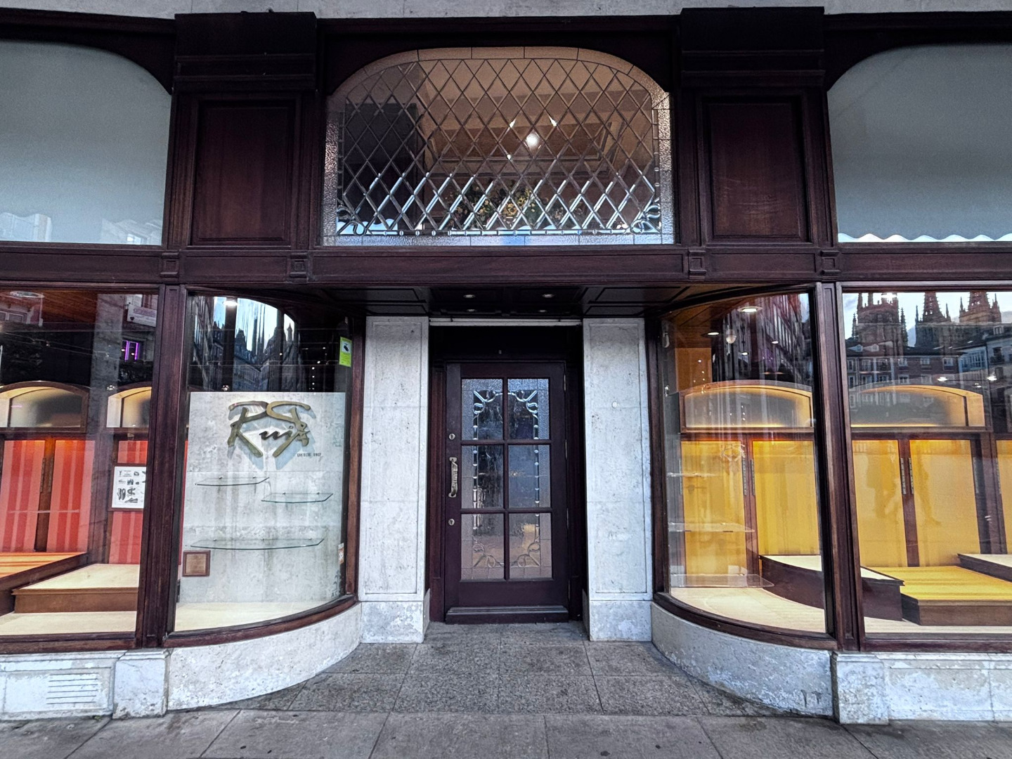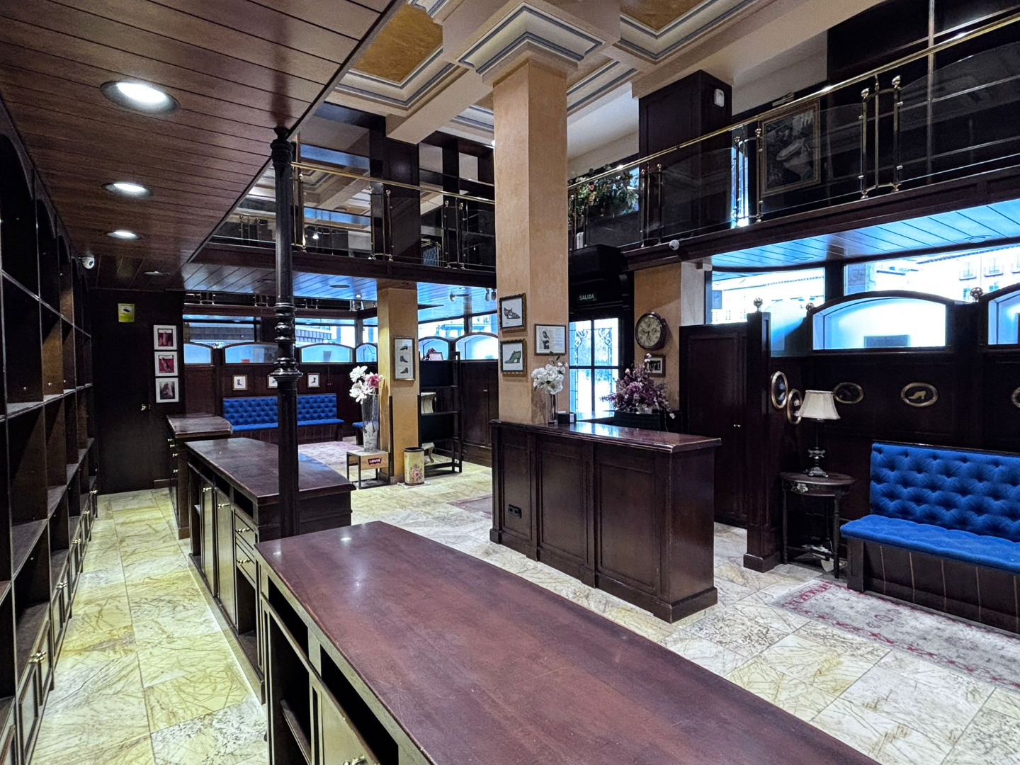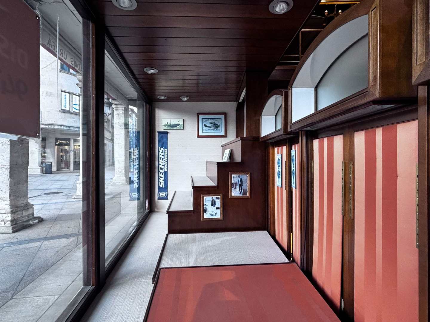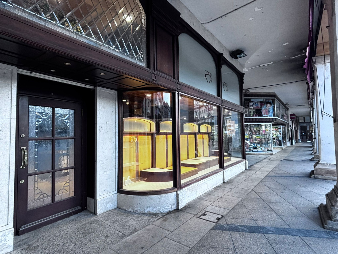 Su fachada en esquina, de más de 15 metros lineales y con doble altura, destaca por los característicos escaparates que inundan el interior de luz natural. La carpintería exterior, realizada en madera noble y conservada en estado impecable, constituye un elemento patrimonial cuya preservación es indispensable.