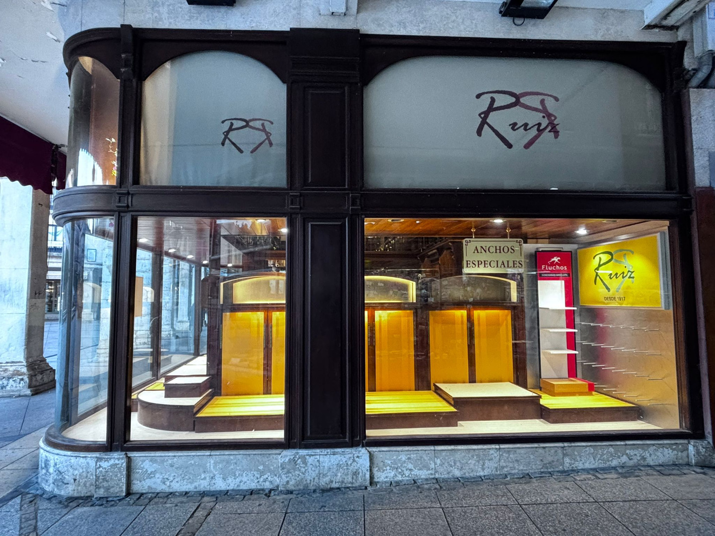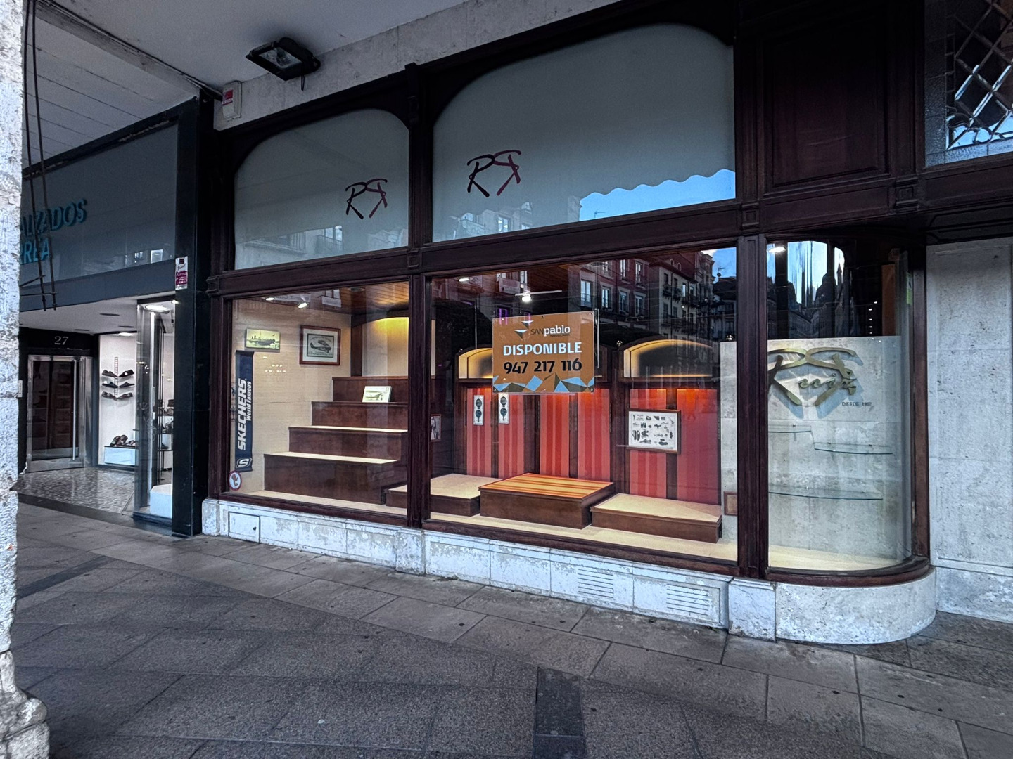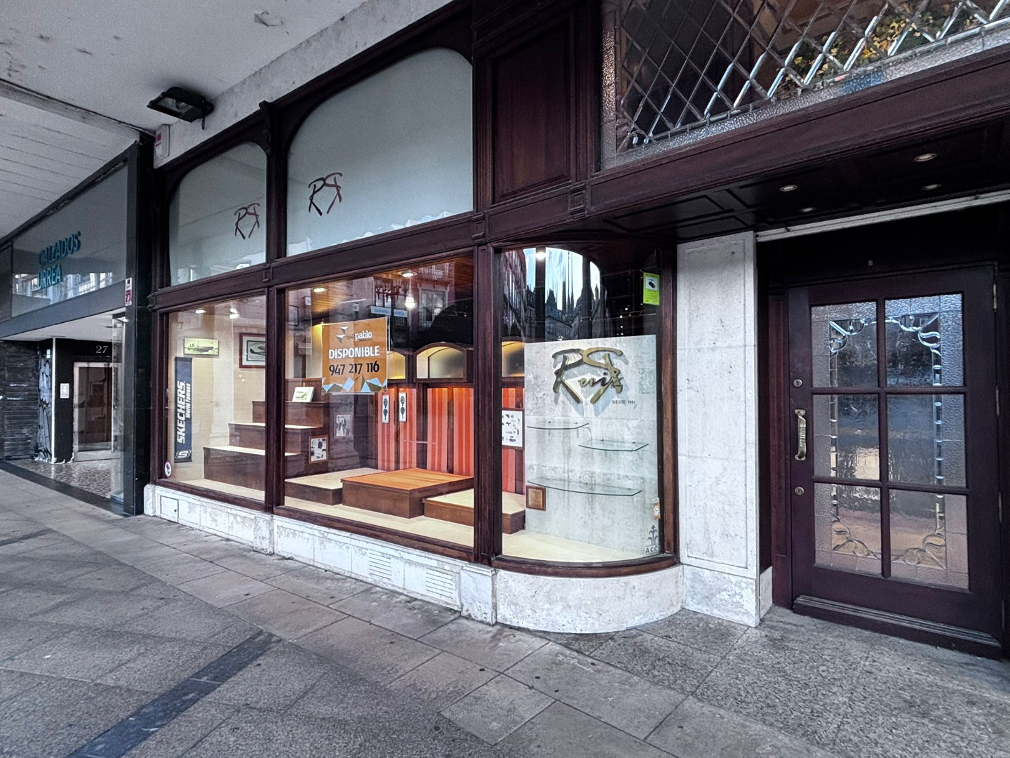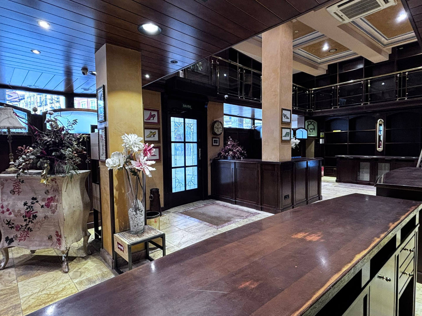 Su fachada en esquina, de más de 15 metros lineales y con doble altura, destaca por los característicos escaparates que inundan el interior de luz natural. La carpintería exterior, realizada en madera noble y conservada en estado impecable, constituye un elemento patrimonial cuya preservación es indispensable.