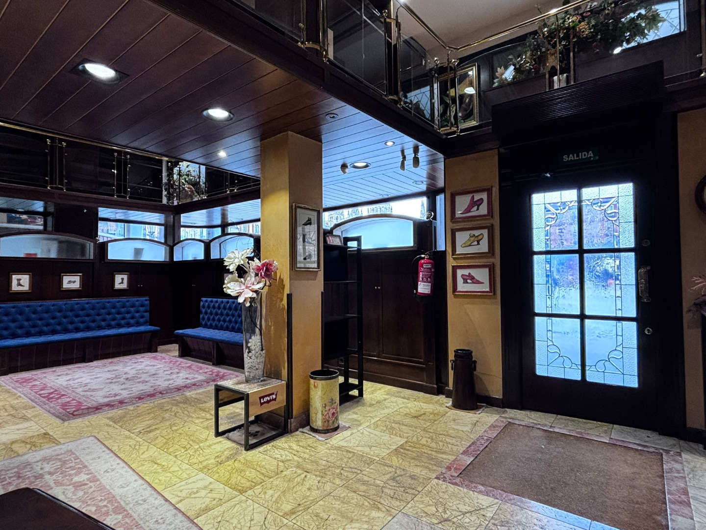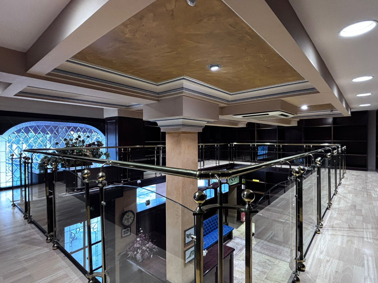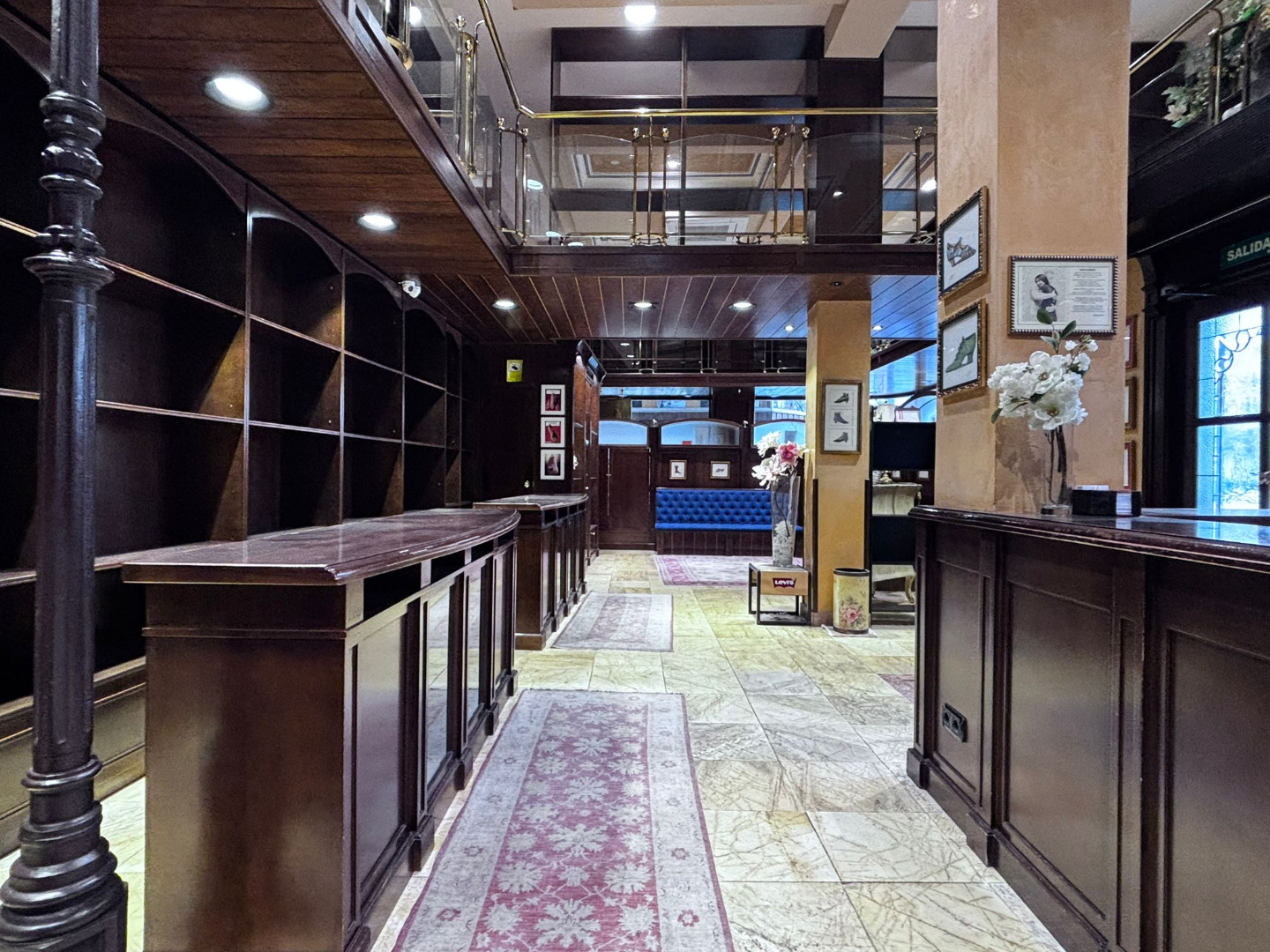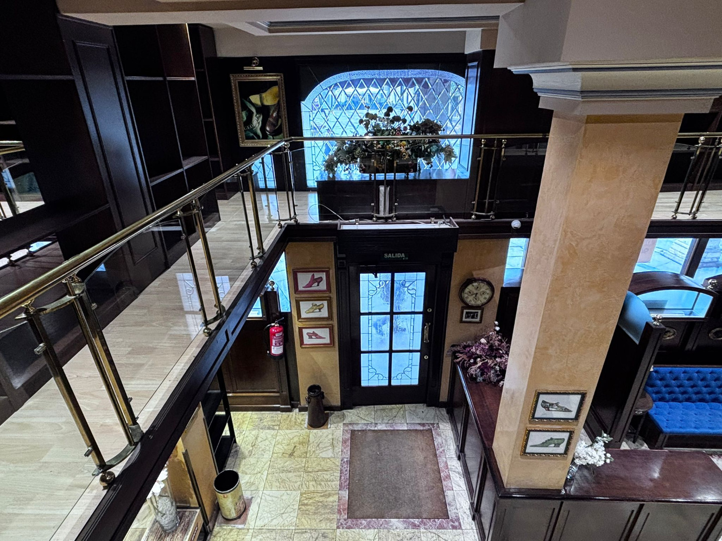 Los cristales biselados y la balaustrada acristalada con pasamanos de bronce conforman un conjunto de alto valor estético, convirtiendo cada rincón en una composición digna de contemplación.