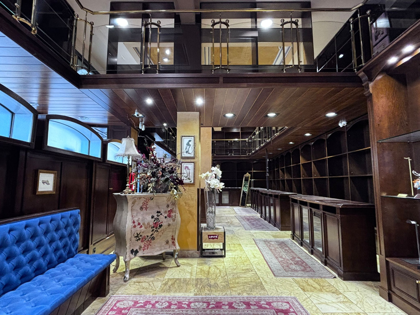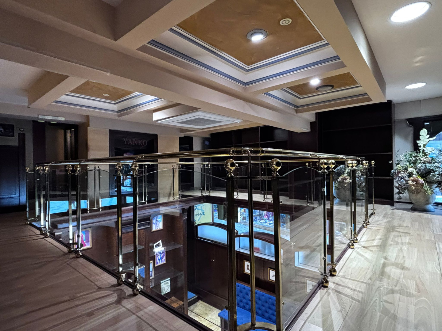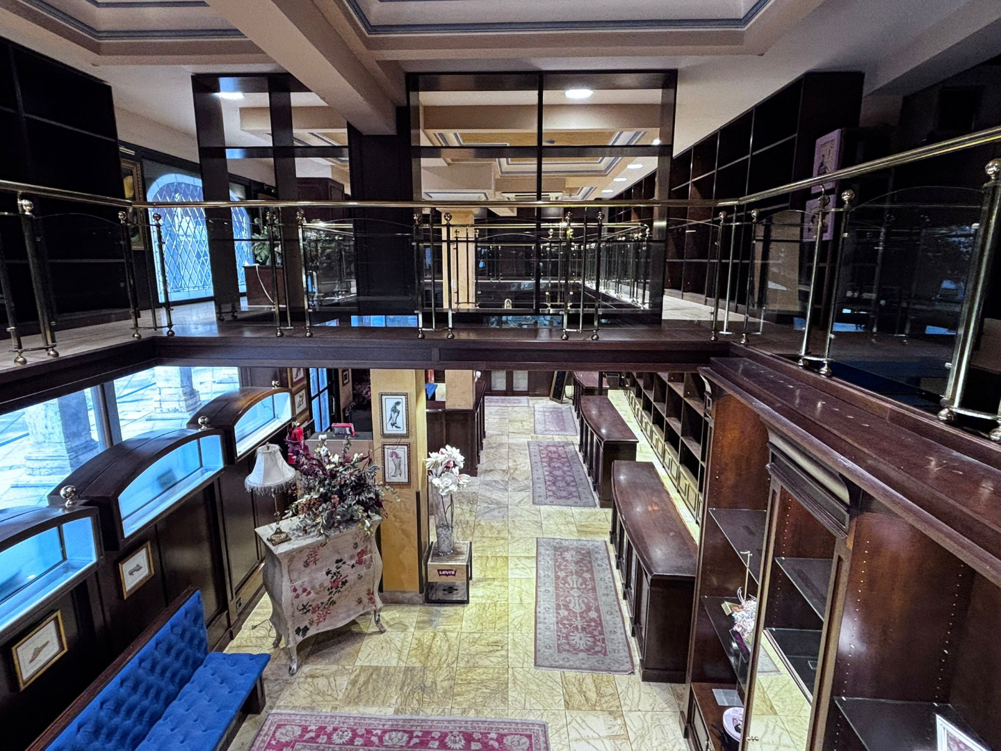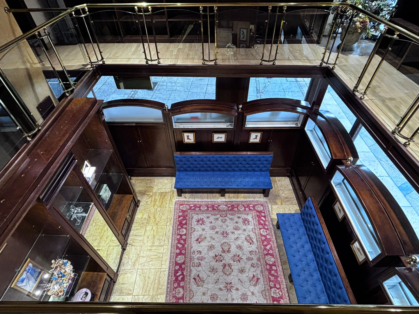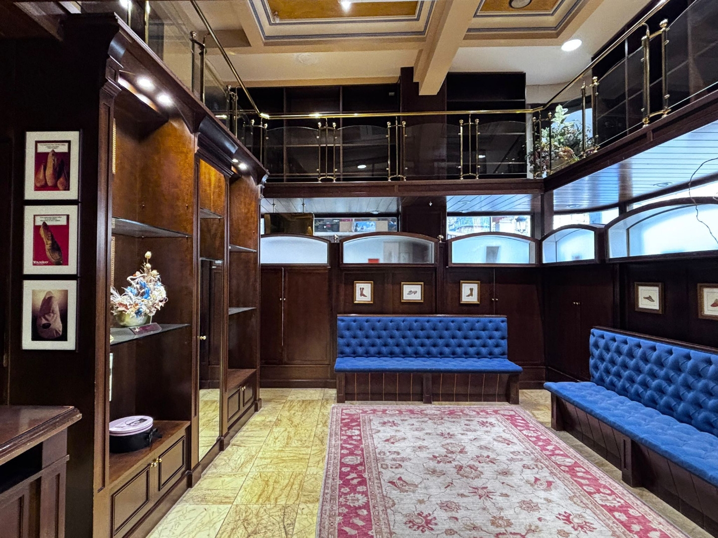 Los cristales biselados y la balaustrada acristalada con pasamanos de bronce conforman un conjunto de alto valor estético, convirtiendo cada rincón en una composición digna de contemplación.
