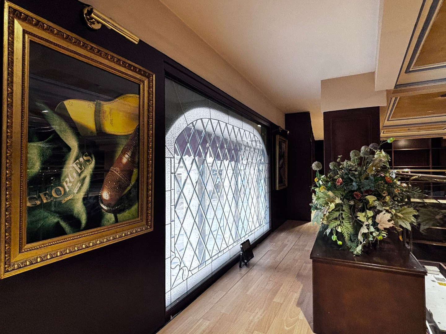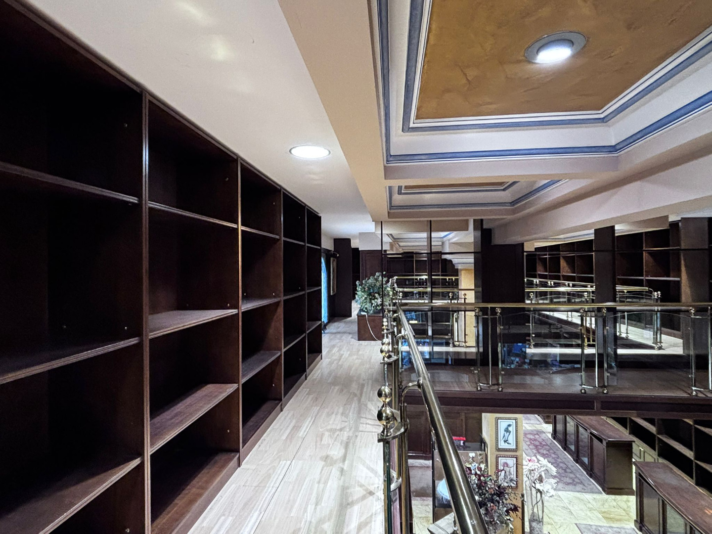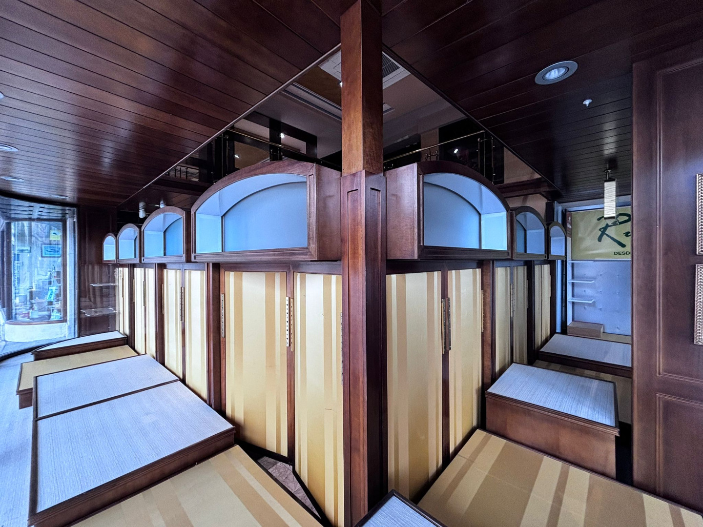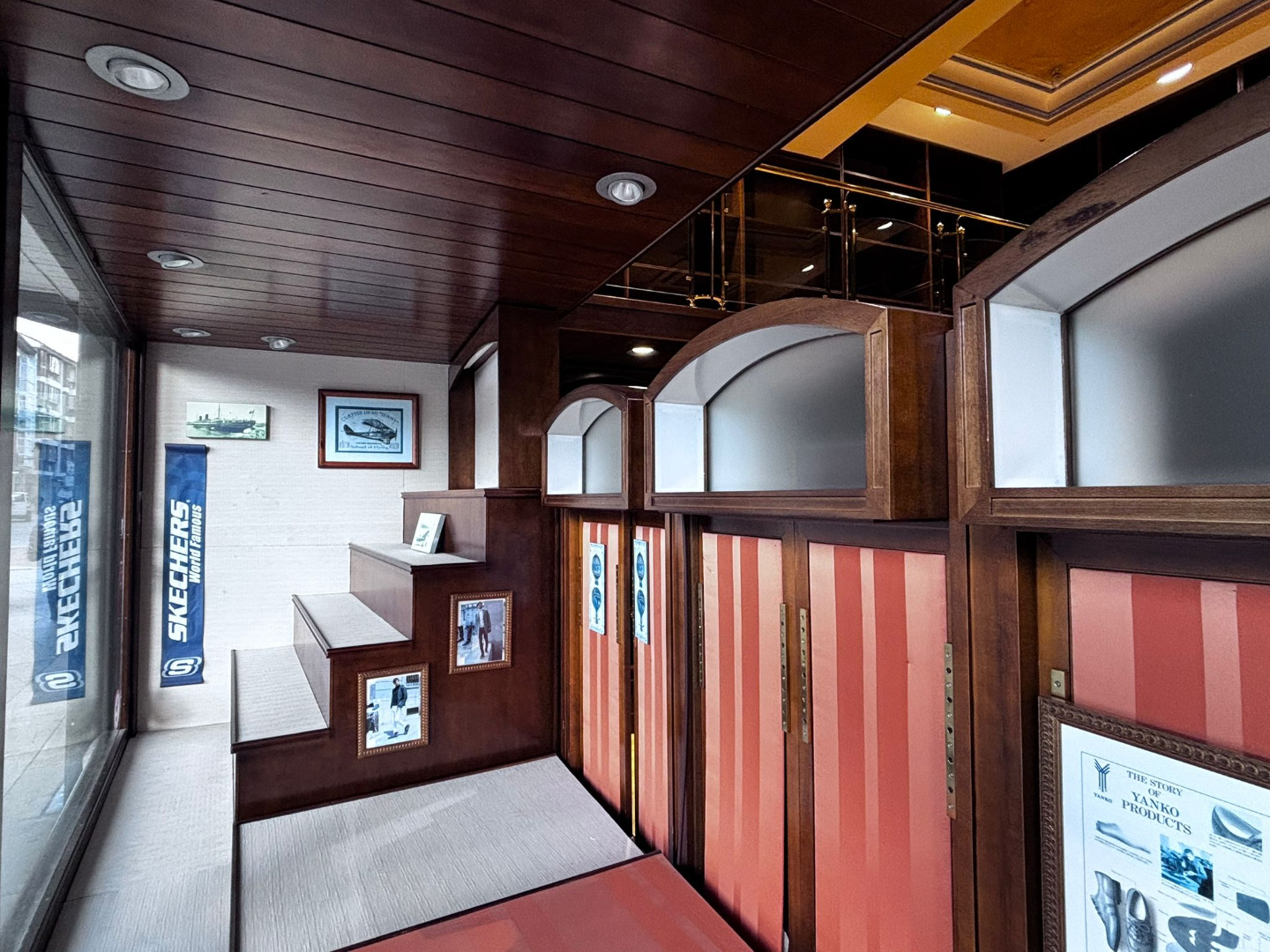Los cristales biselados y la balaustrada acristalada con pasamanos de bronce conforman un conjunto de alto valor estético, convirtiendo cada rincón en una composición digna de contemplación.