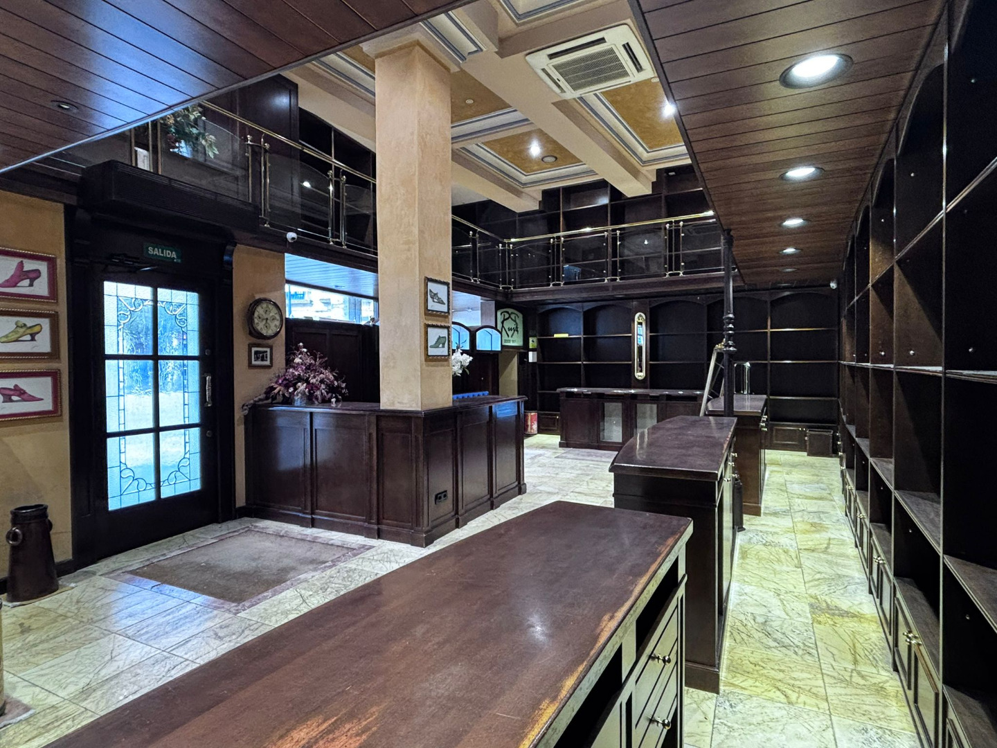 El inmueble cuenta con 160 m² distribuidos en tres niveles: Planta baja, concebida como zona principal de actividad comercial. Entreplanta abierta, equipada con estanterías, despacho y aseos.
