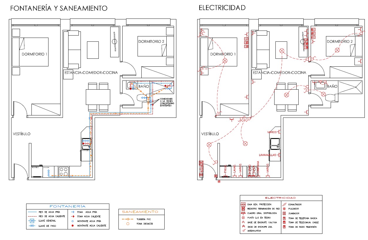 Actualmente como oficina y con el proyecto realizado para sacar un salón-cocina abierto, 2 dormitorios o bien 1 según necesidades y un baño completo.