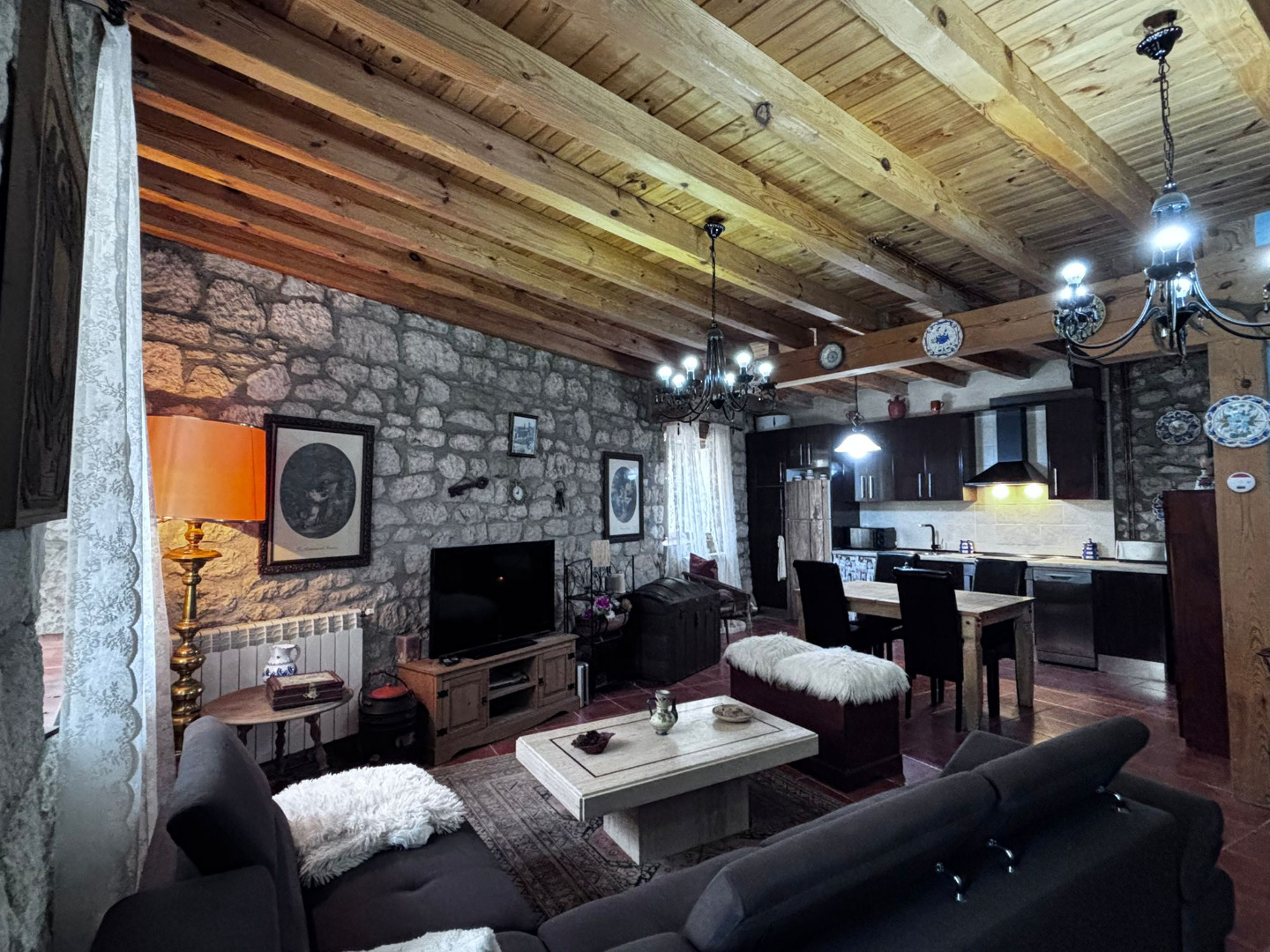 Casa que en planta baja dispone de una zona muy grande abierta con salón comedor, cocina toda acondicionada, chimenera-calefacción de pellet para toda la casa y baño con ducha.