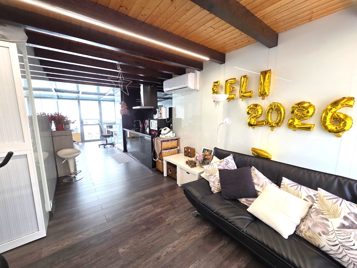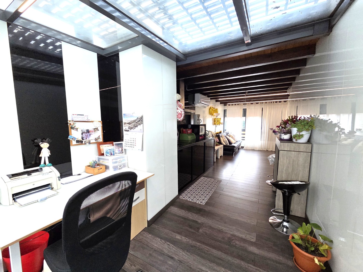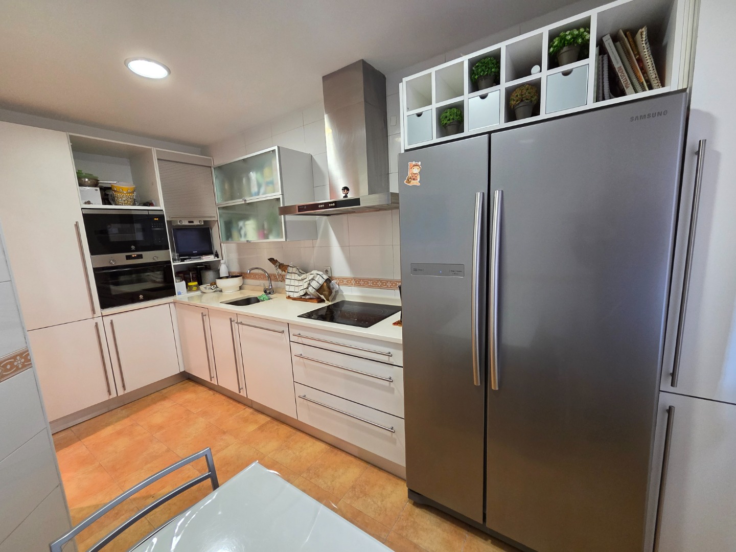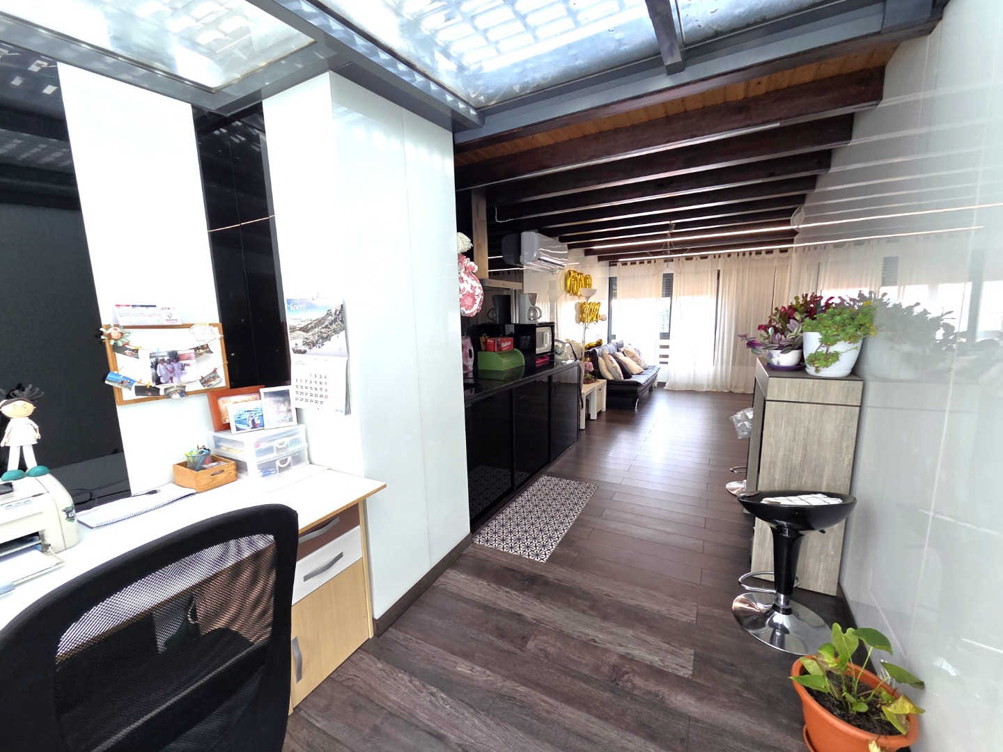 En la planta superior nos encontramos con una terraza acristalada con un tipo merendero con cocina y salón para celebrar eventos con la familia y amigos. También dispone de una terraza descubierta muy soleada.