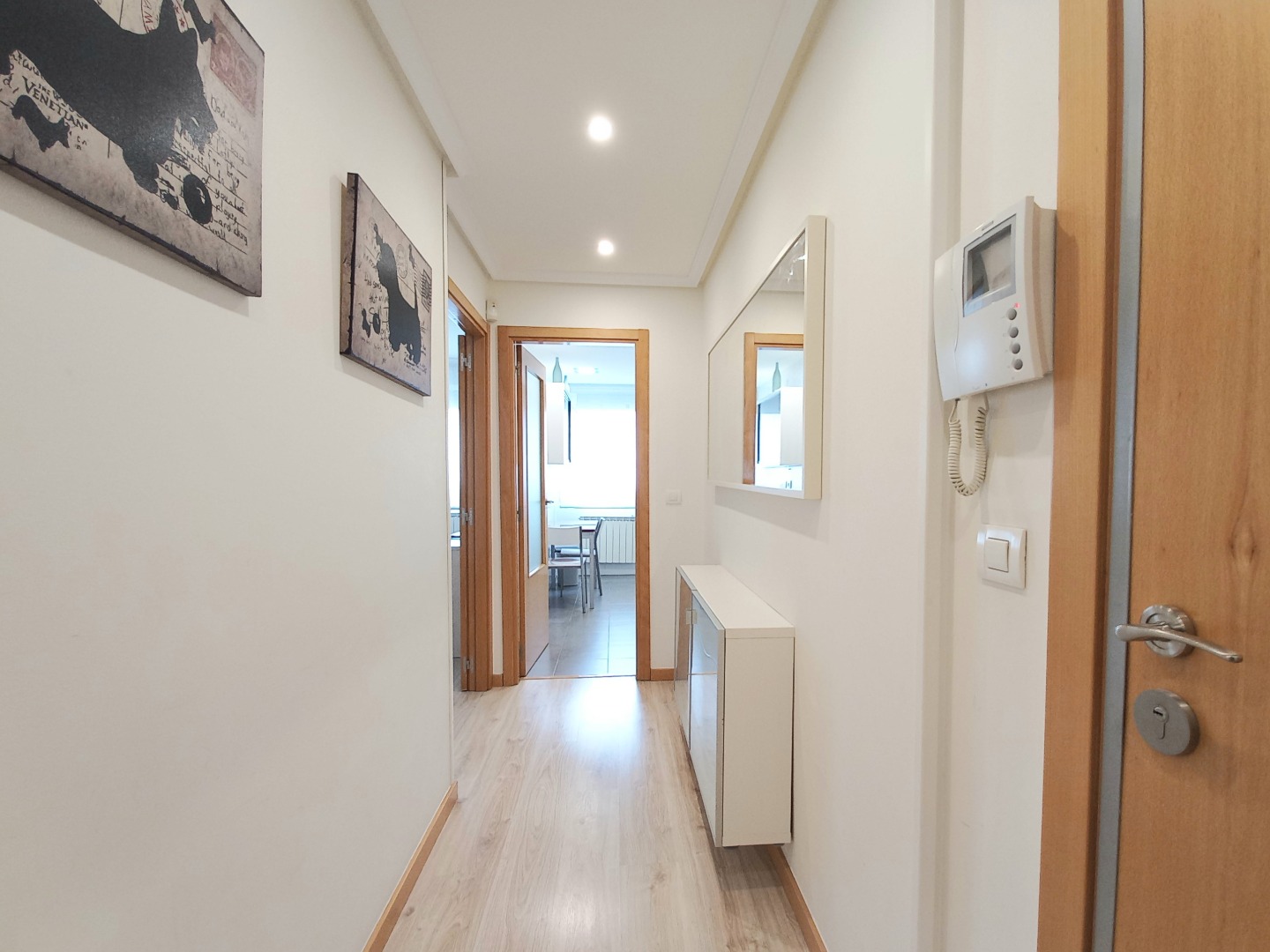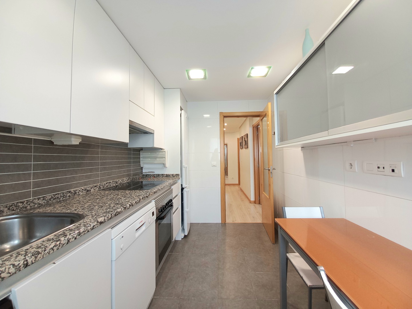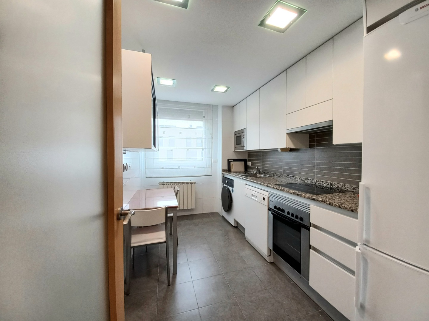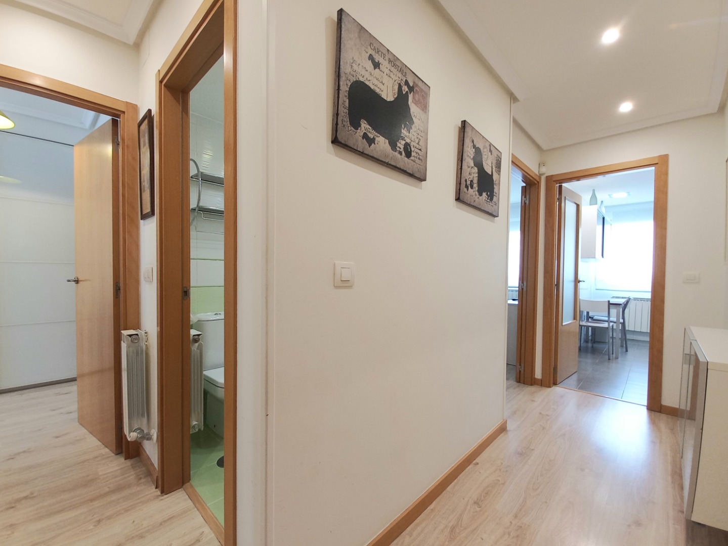 Su noble recibidor nos invita a conocer el interior. En su zona de día disfrutará de un amplísimo salón comedor, flanqueado por grandes ventanales. Junto a él, su amplia cocina, equipada.