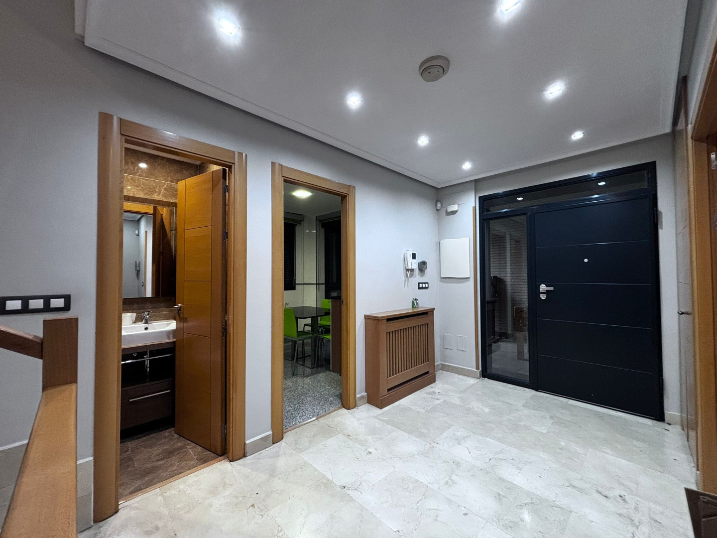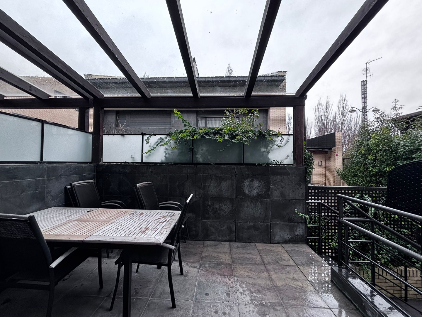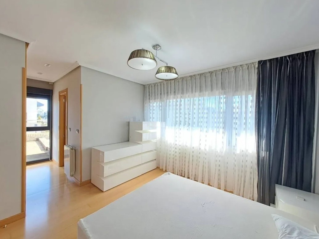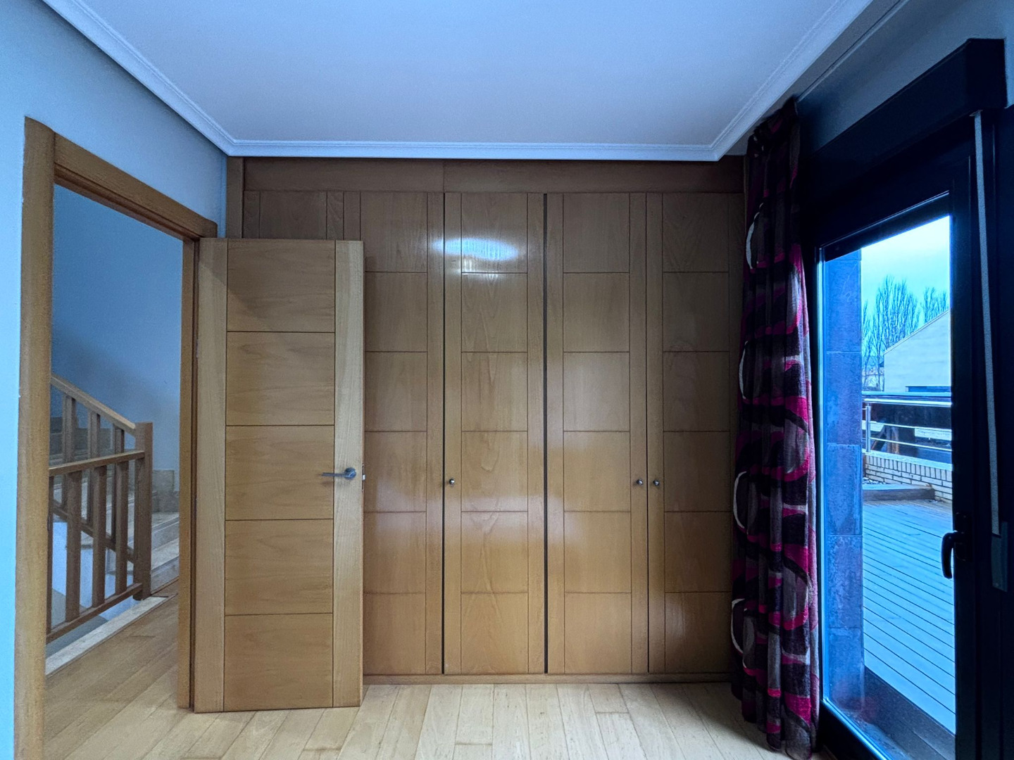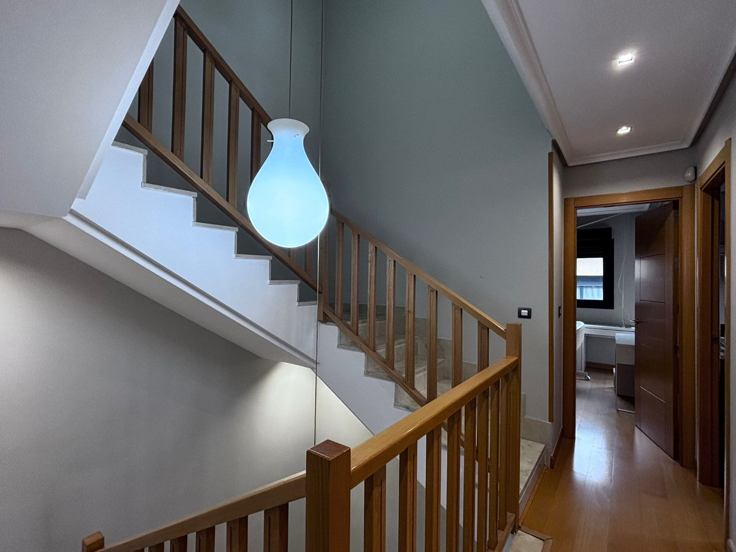 La zona de descanso cuenta con cuatro dormitorios amplios con armarios empotrados. El dormitorio principal dispone de vestidor, baño en suite y acceso a una terraza tipo solárium. La vivienda ofrece además dos baños completos y un aseo de cortesía en planta baja.