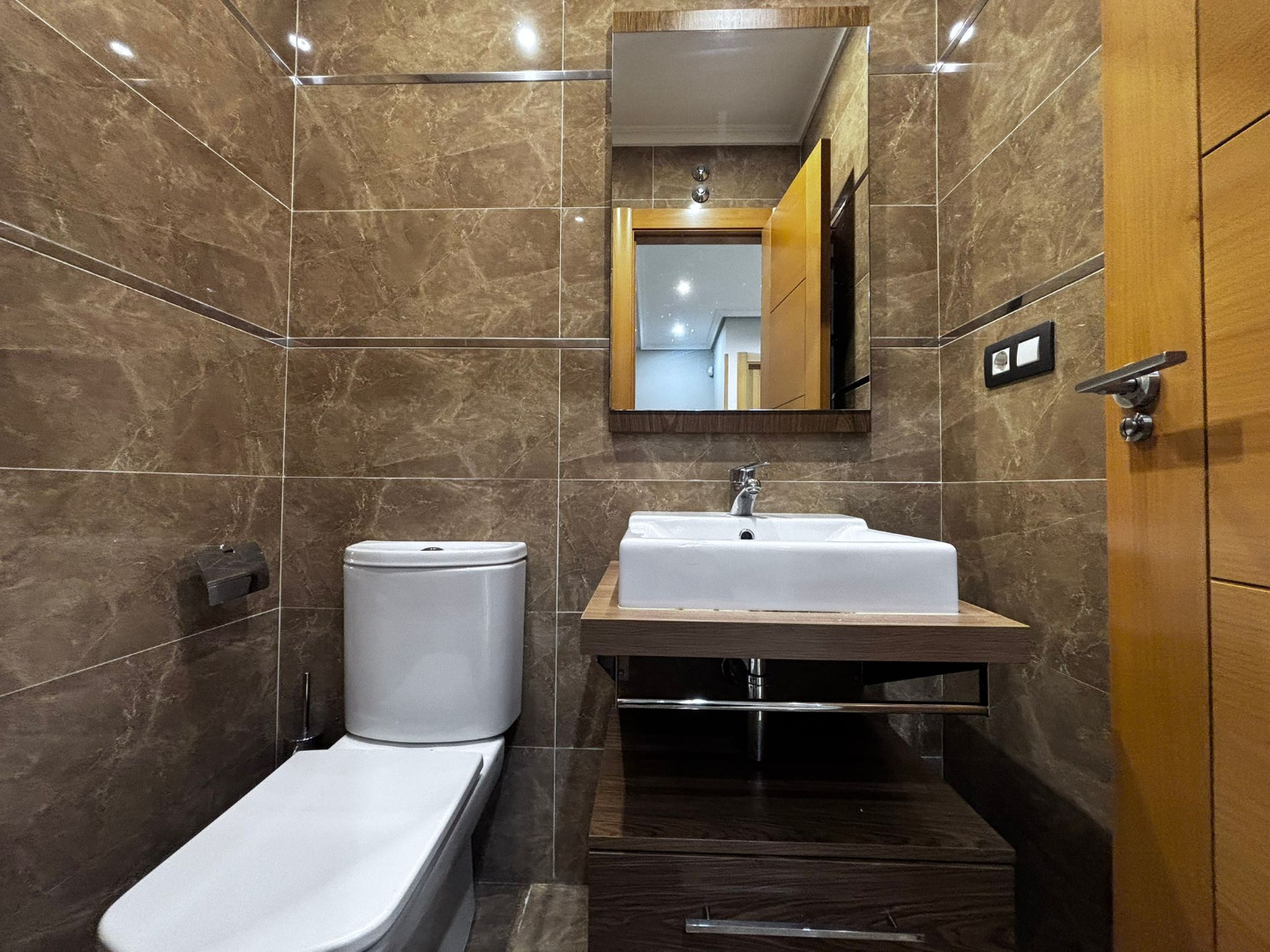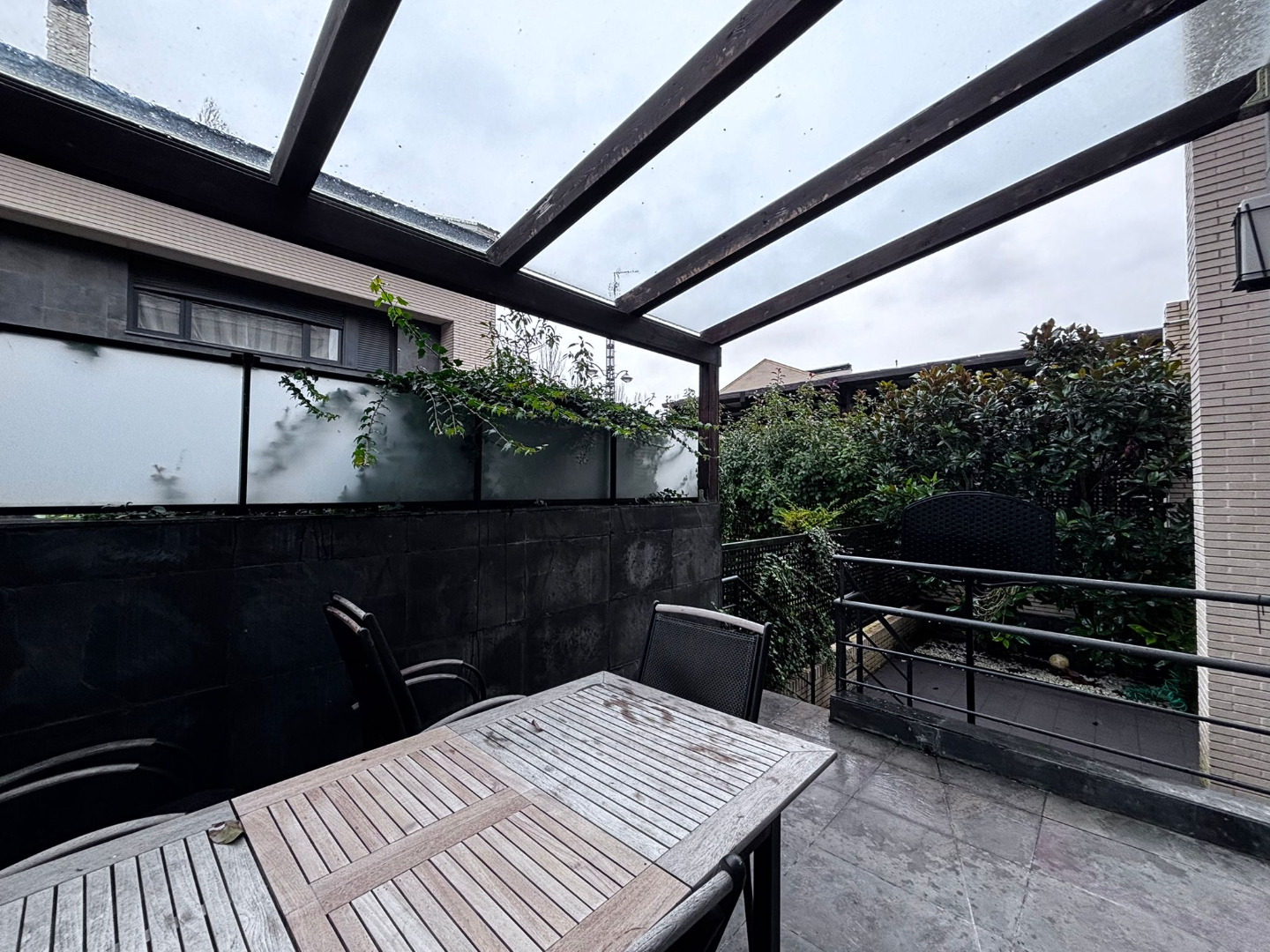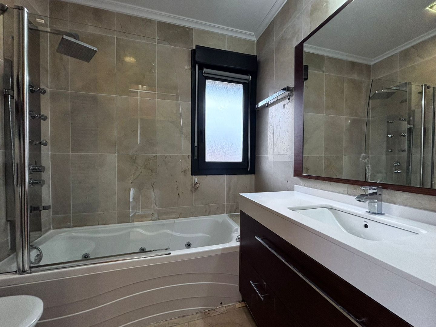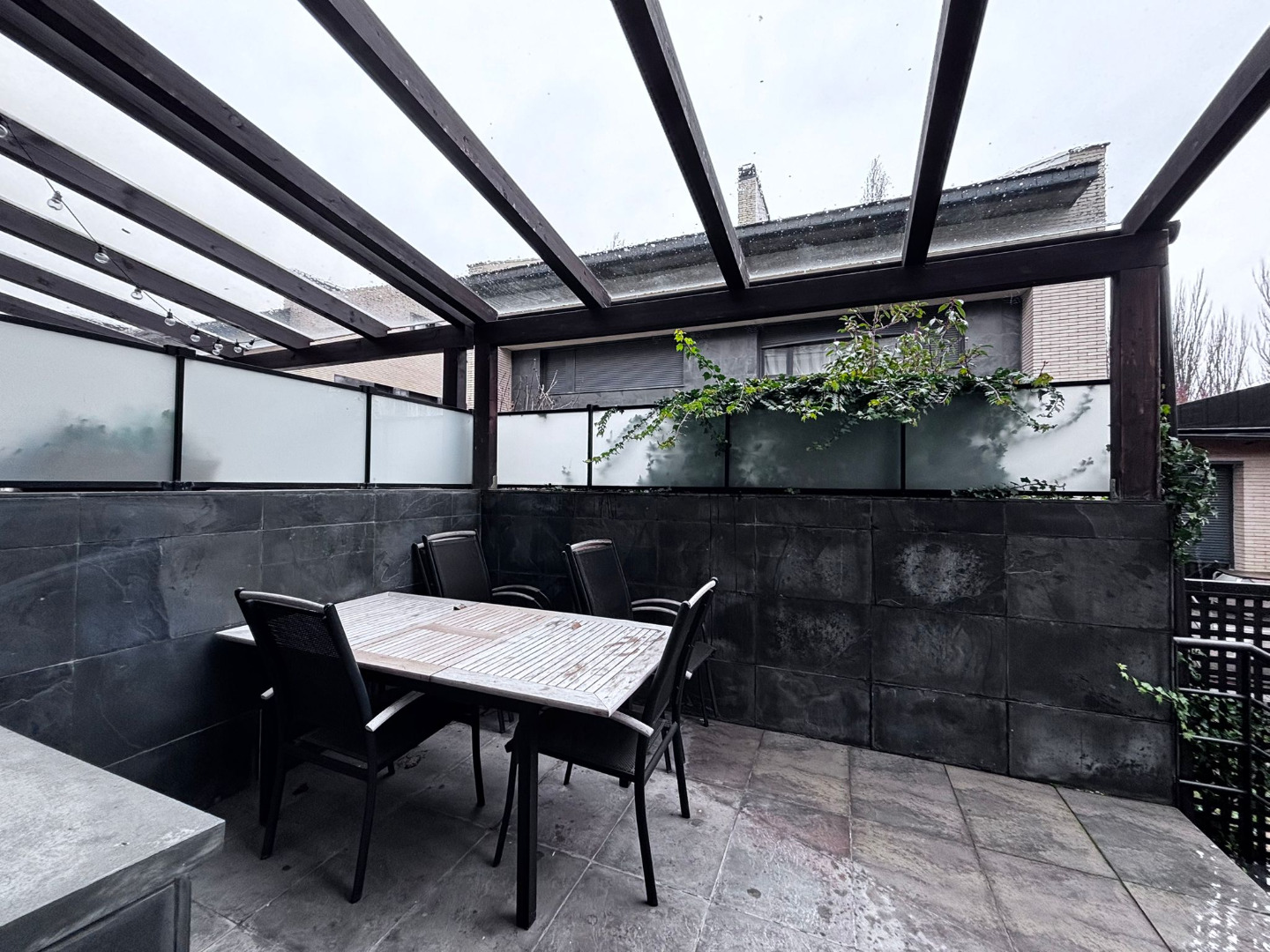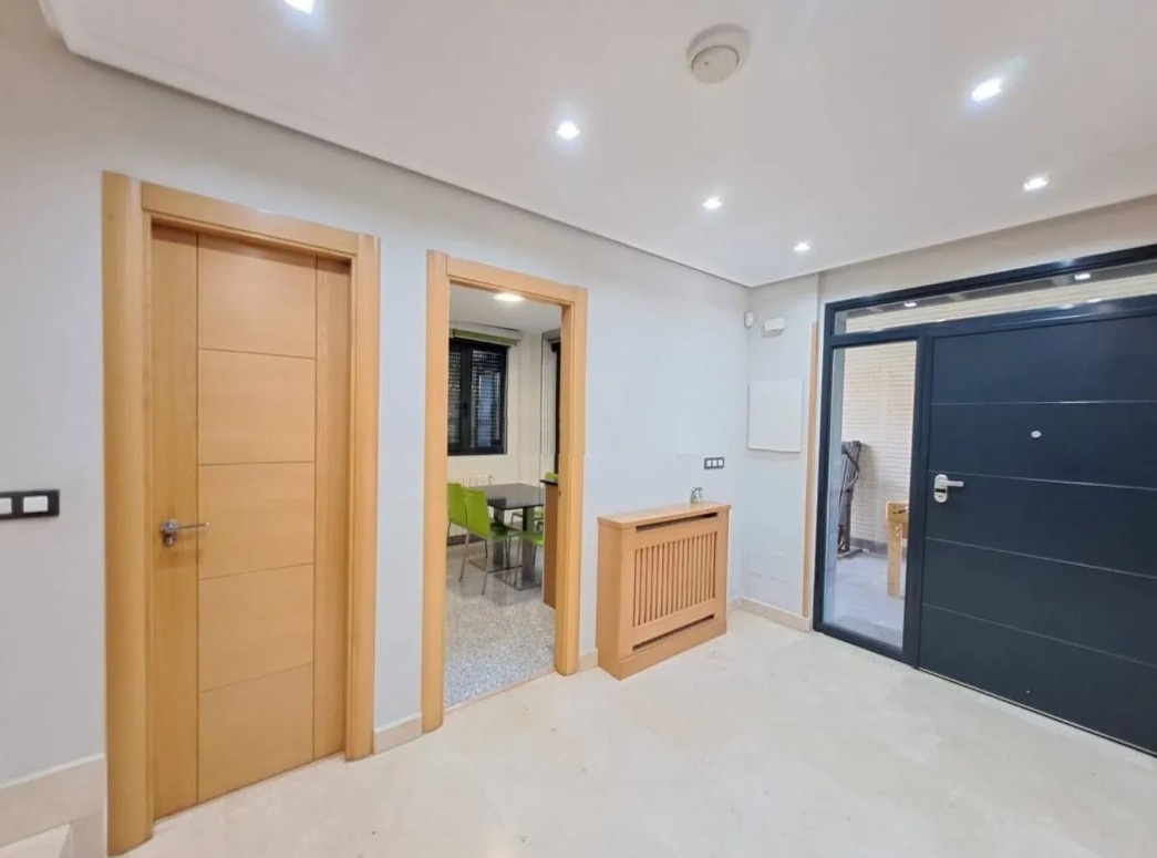 La zona de descanso cuenta con cuatro dormitorios amplios con armarios empotrados. El dormitorio principal dispone de vestidor, baño en suite y acceso a una terraza tipo solárium. La vivienda ofrece además dos baños completos y un aseo de cortesía en planta baja.