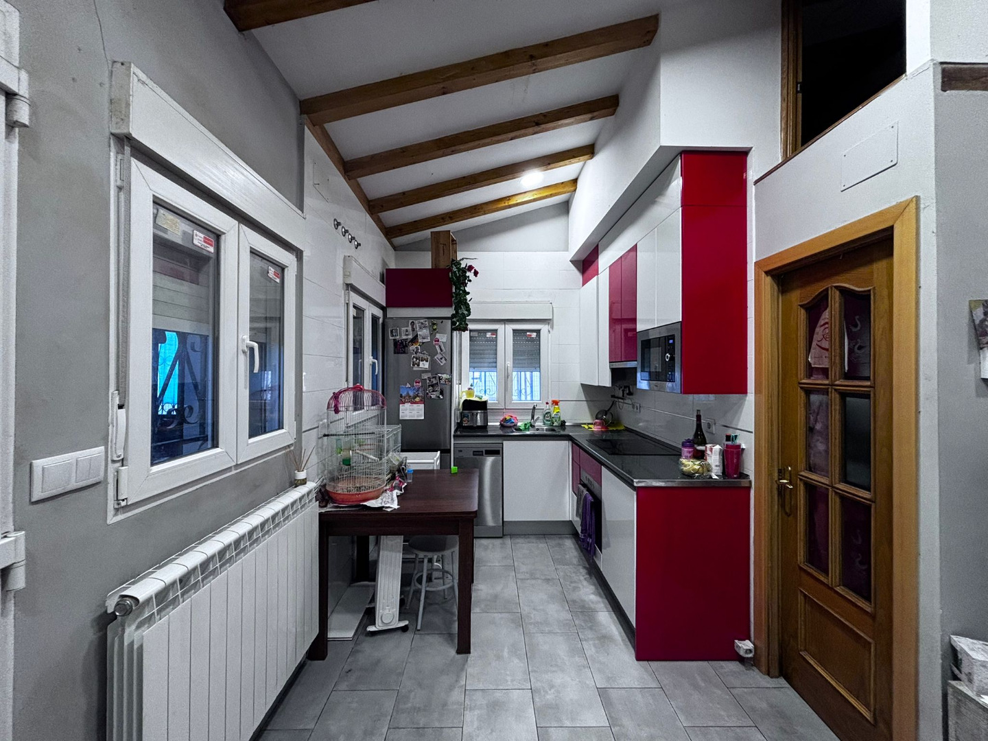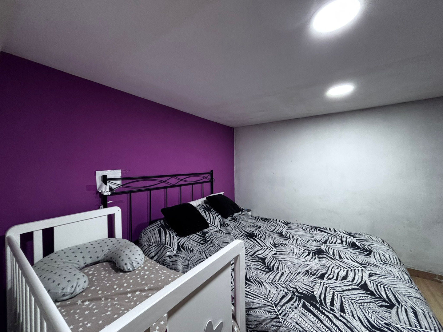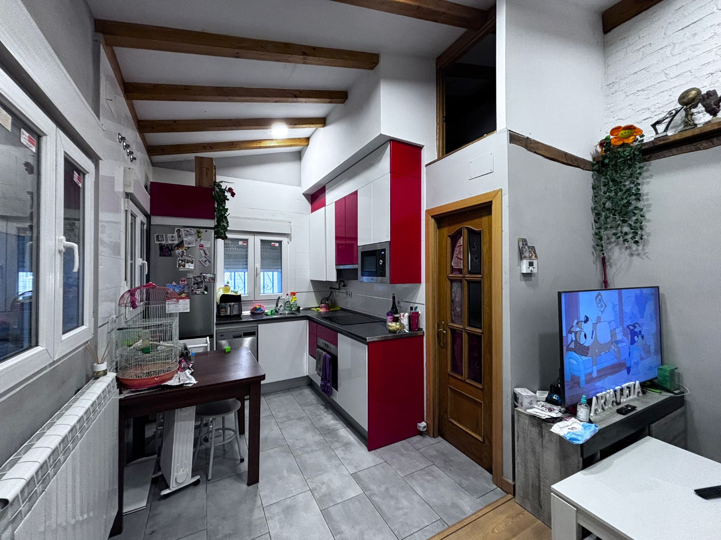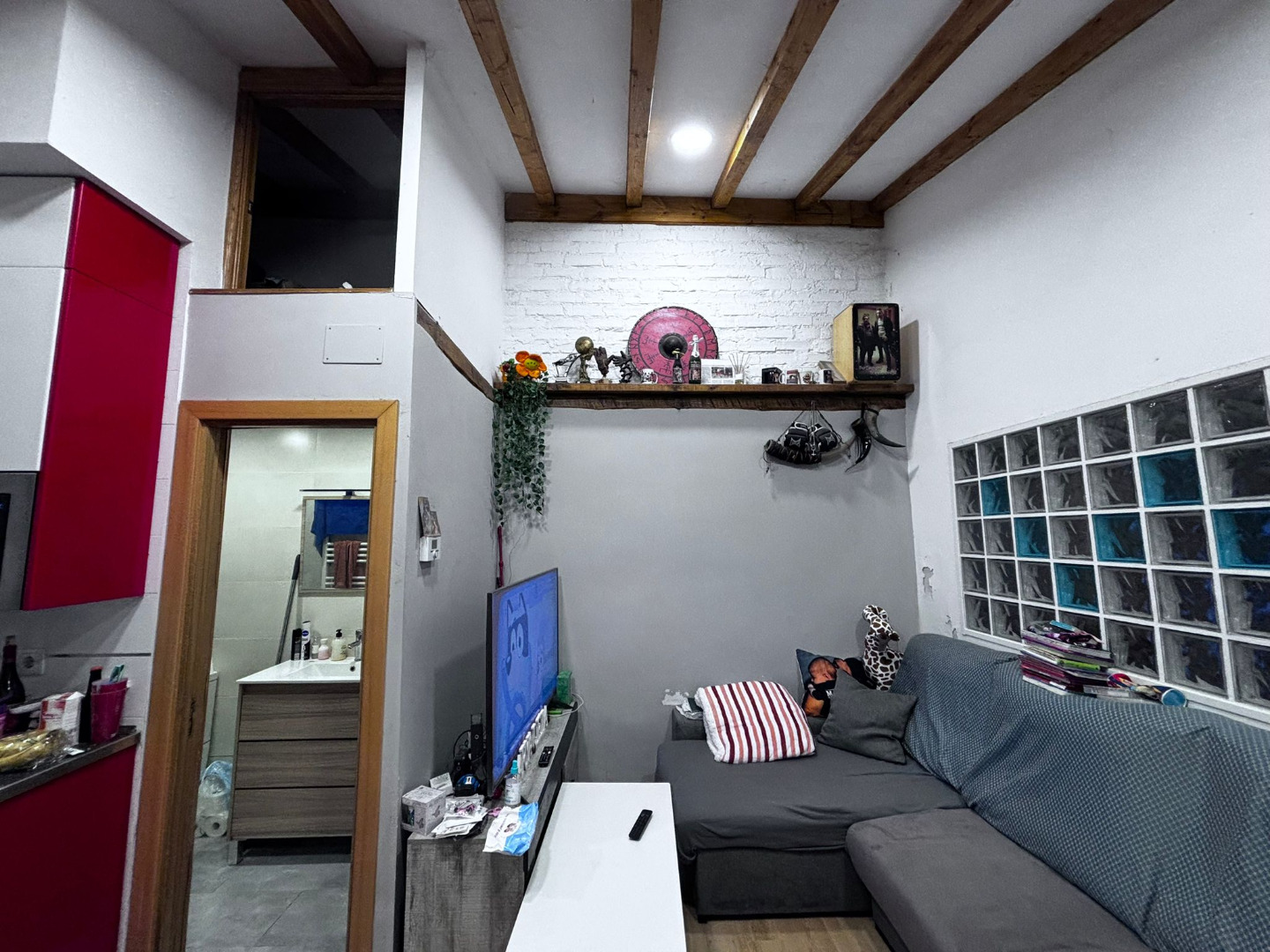 Salón abierto con cocina amueblada, baño y 3 dormitorios. Un altillo trastero arriba del salón.