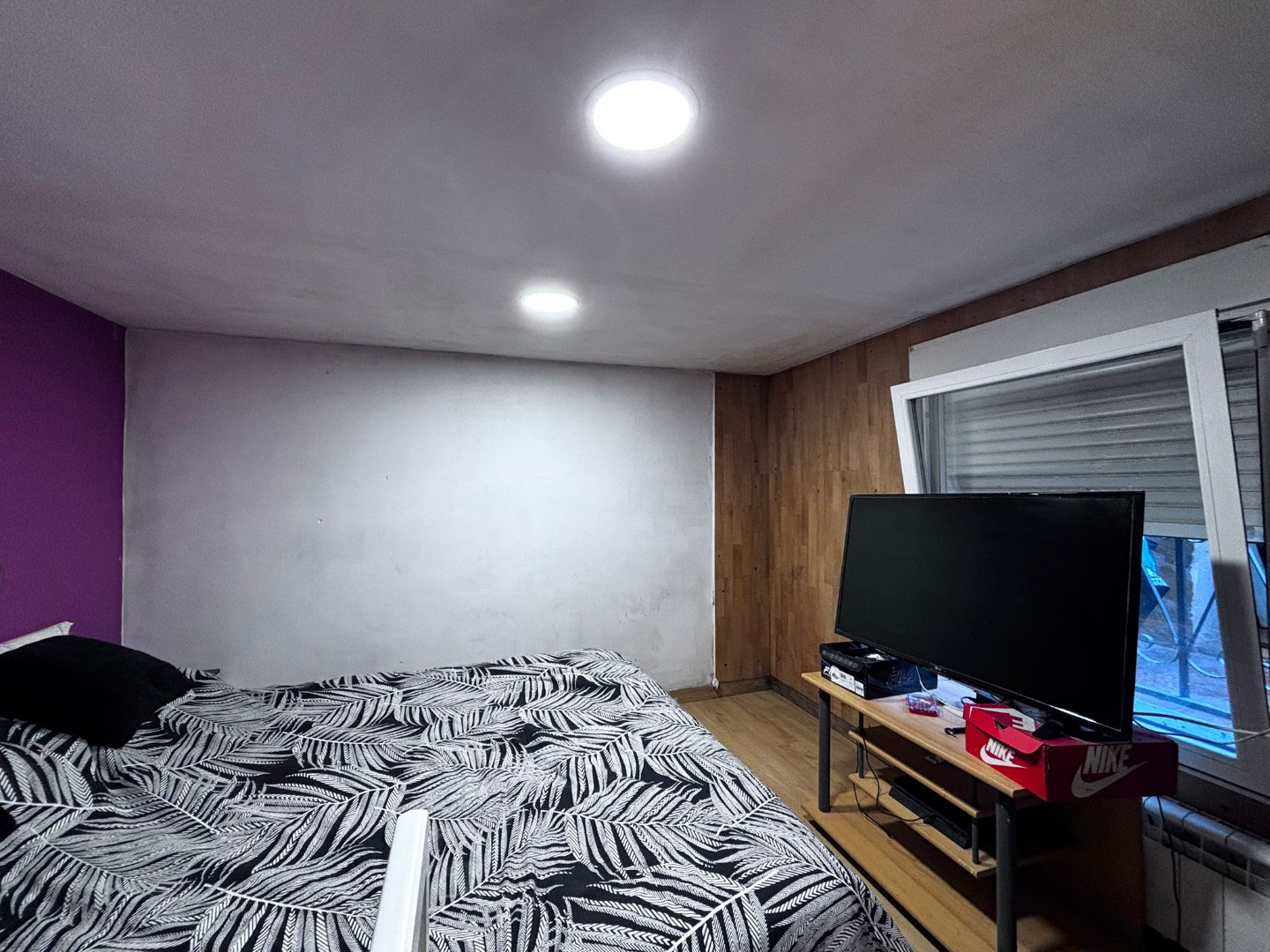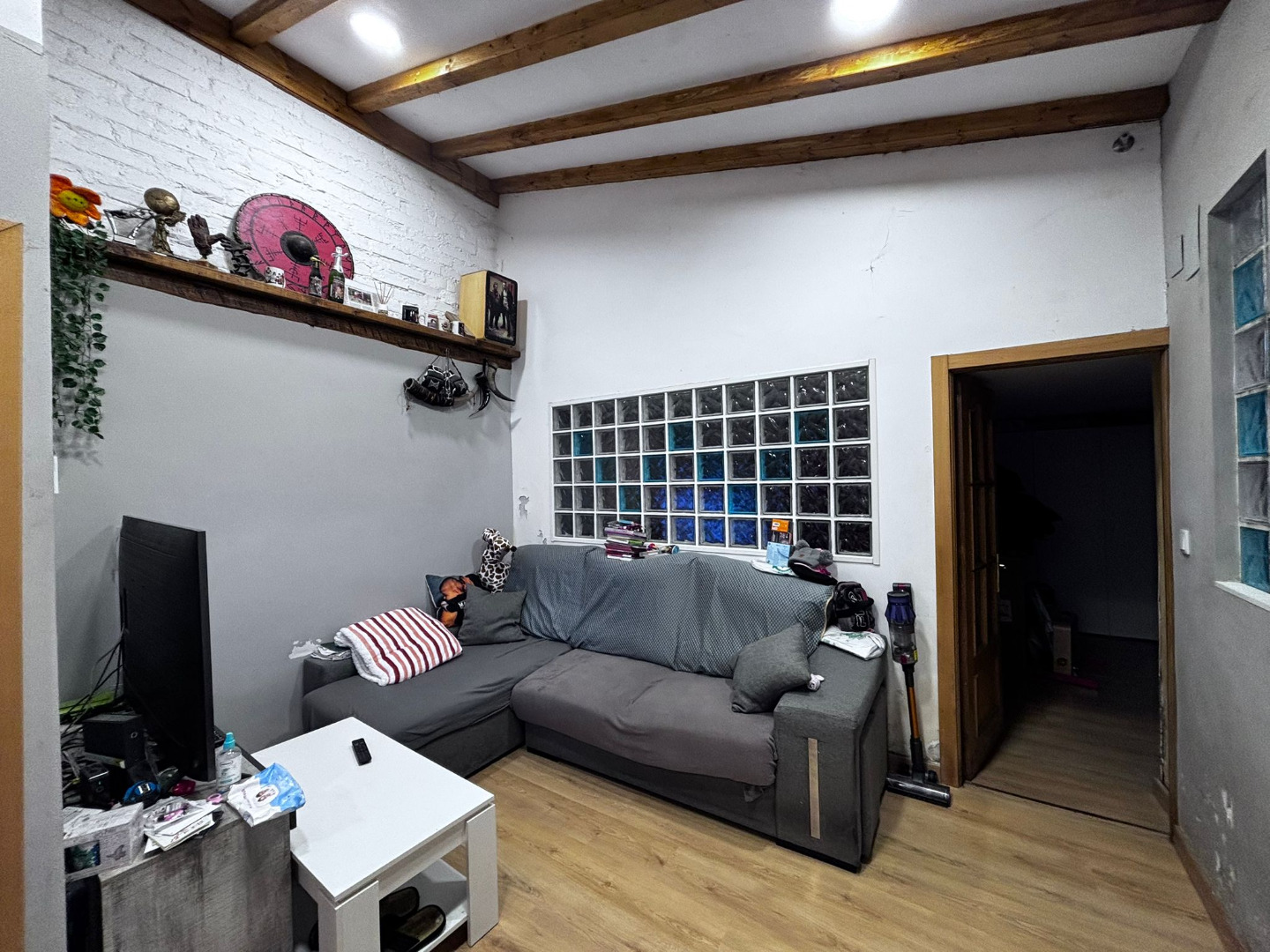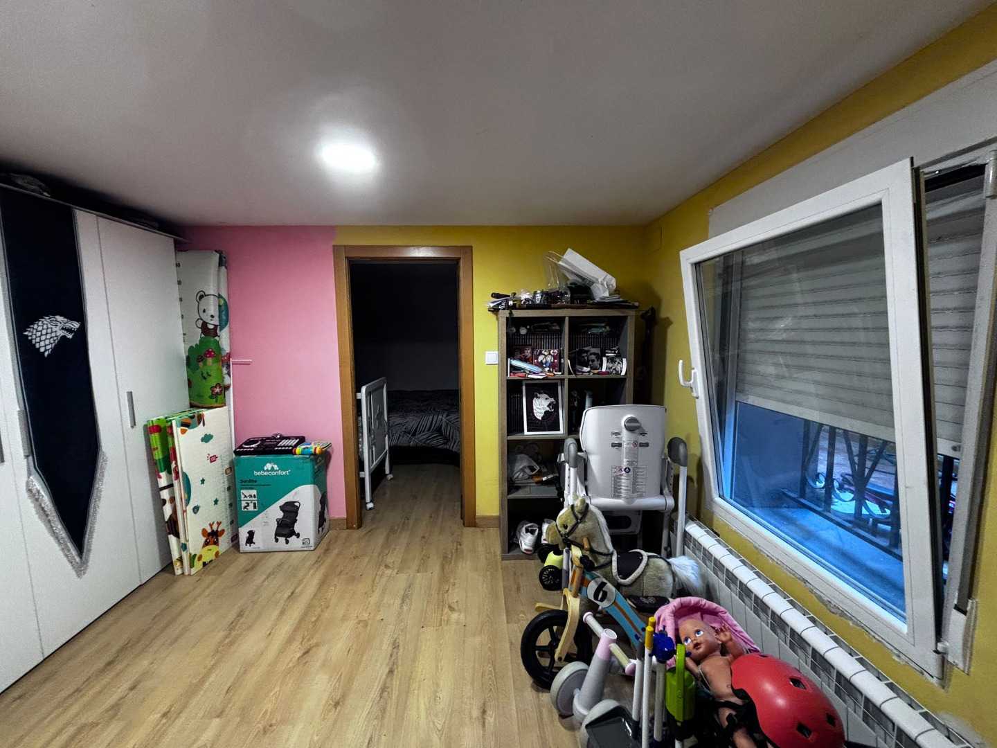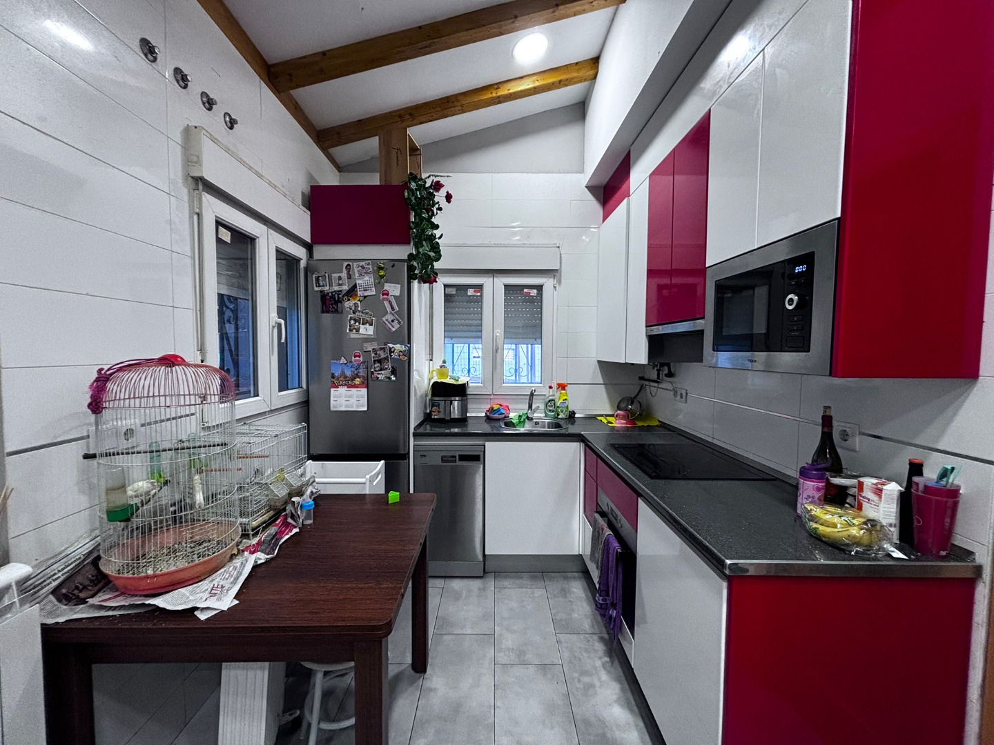 Salón abierto con cocina amueblada, baño y 3 dormitorios. Un altillo trastero arriba del salón.