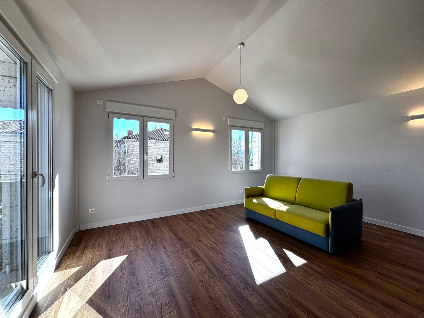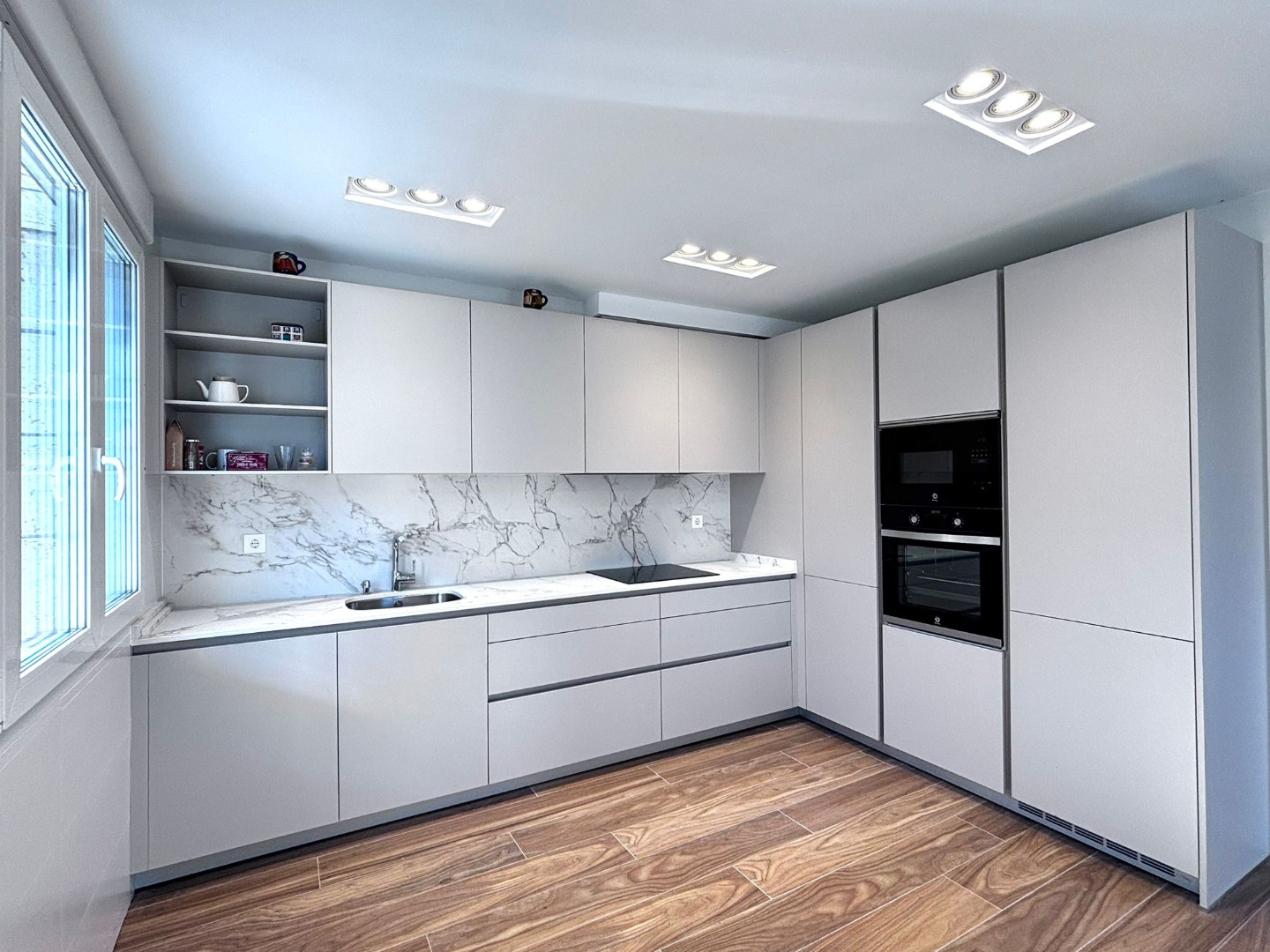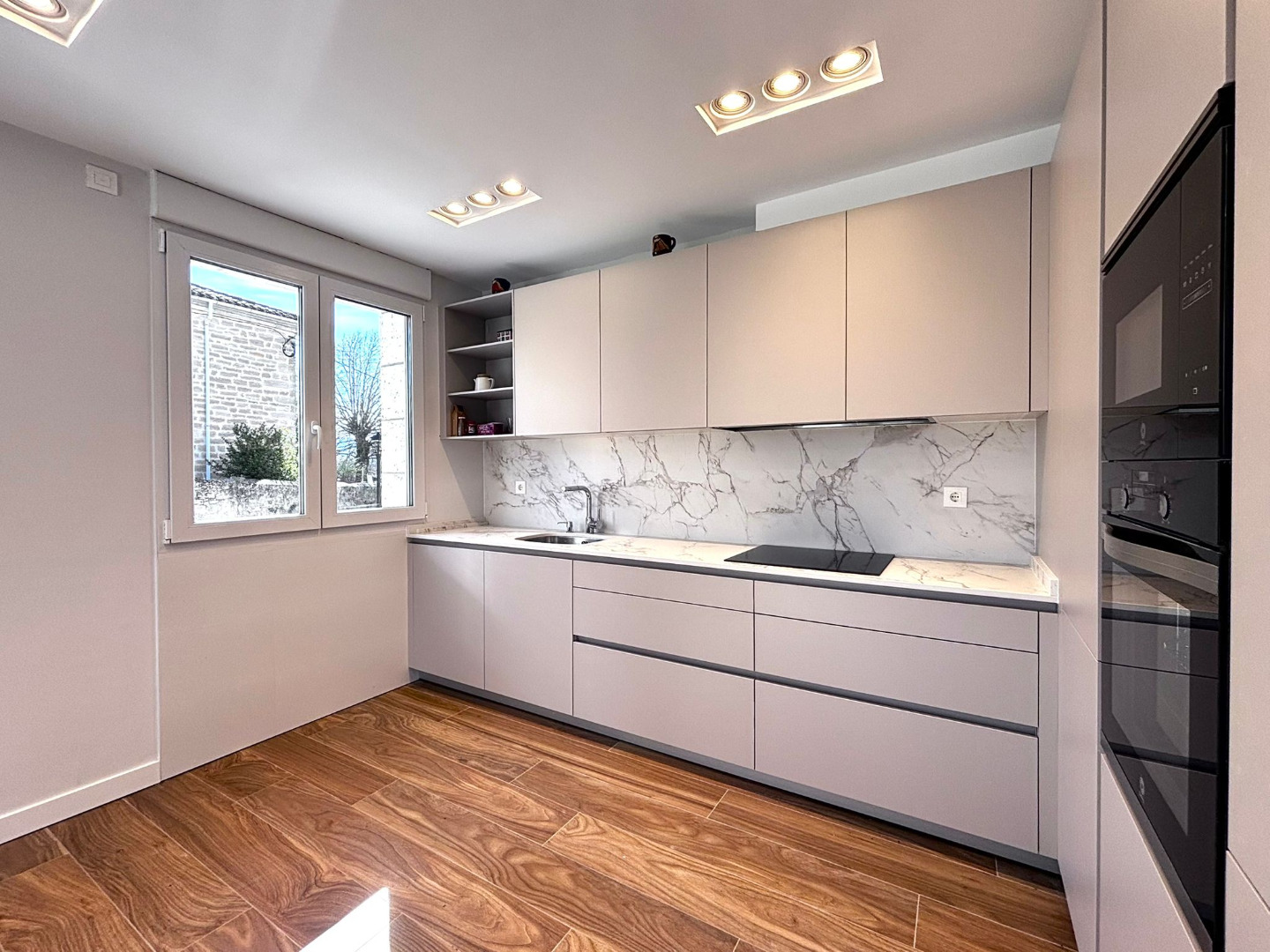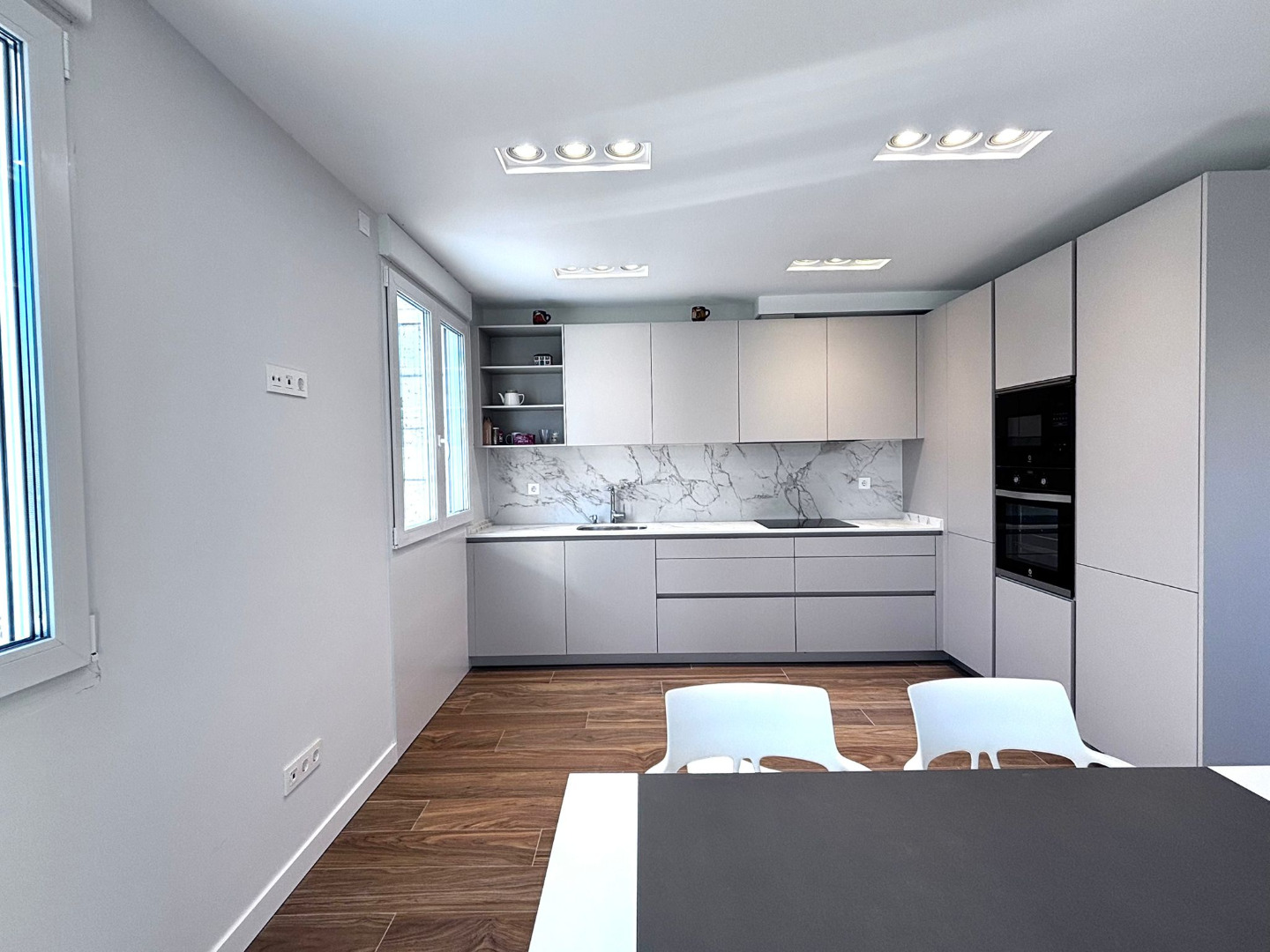 Hall con cocina amueblada a estrenar y salón abierto en un espacio lleno de luz y bonitas vistas junto a la iglesia y el parque. Baño completo de PORCELANOSA, cuarto trastero y garaje cerrado automatizado con suelo gres porcelánico rectificado espesorado para grandes cargas.