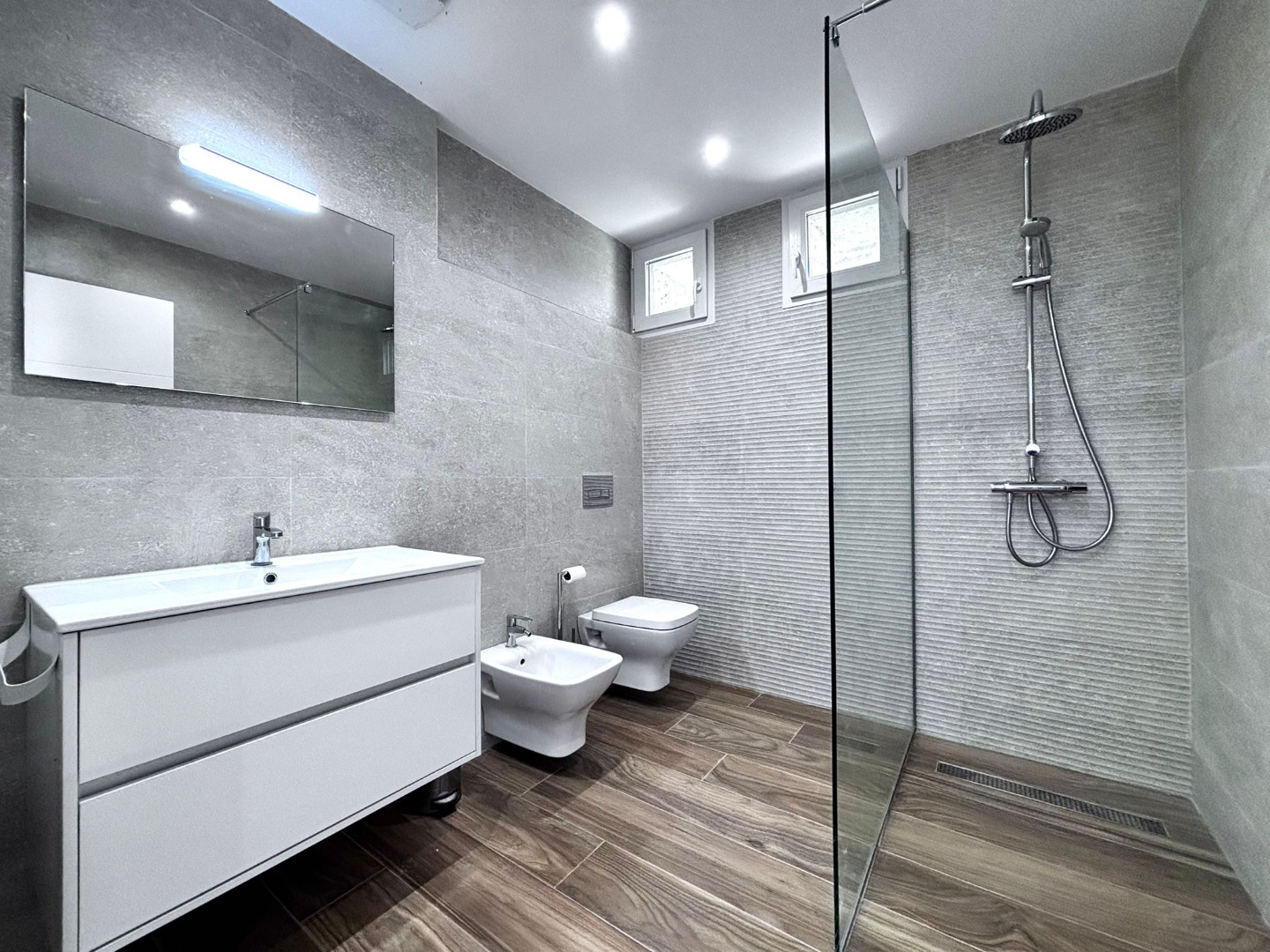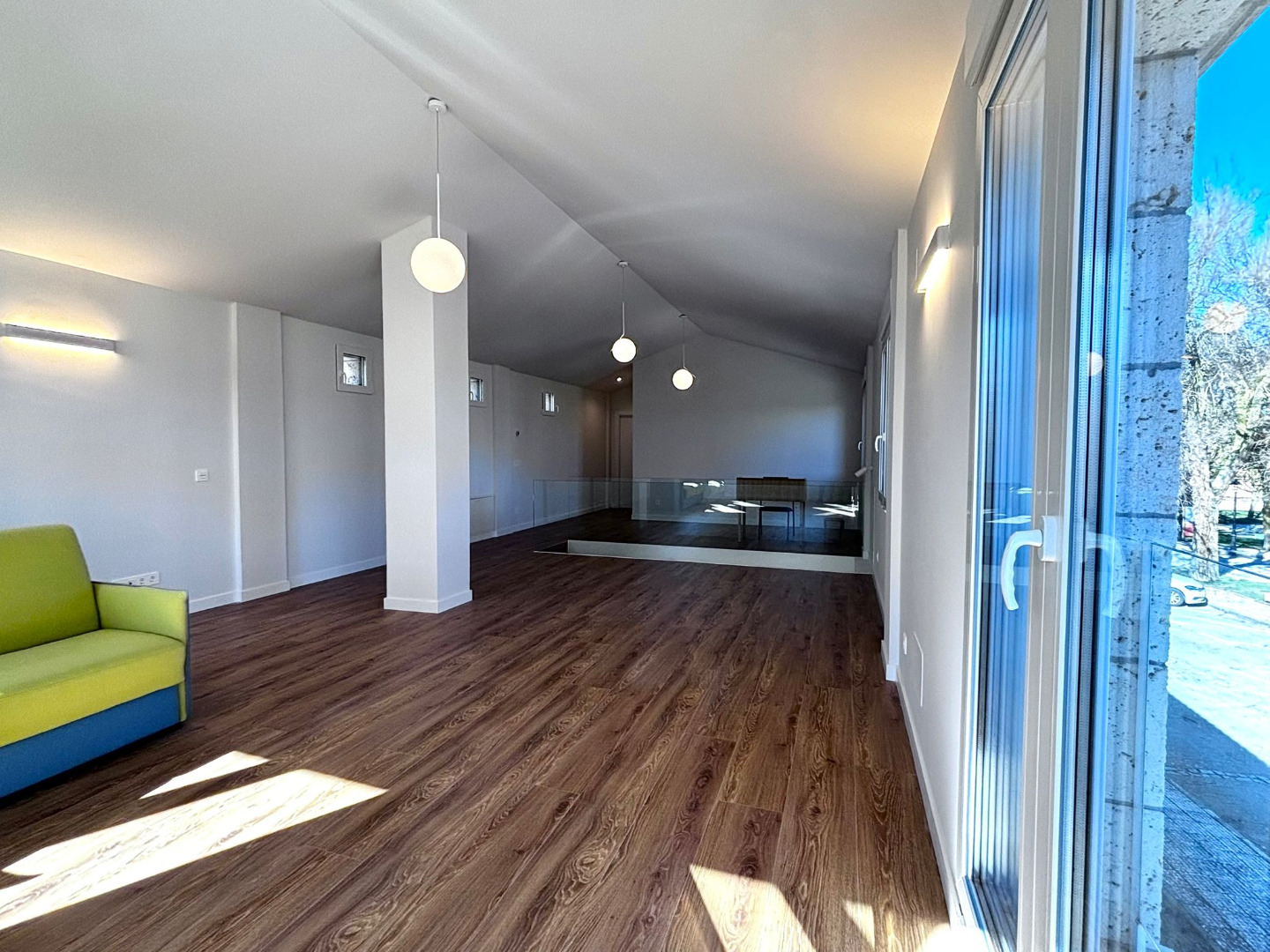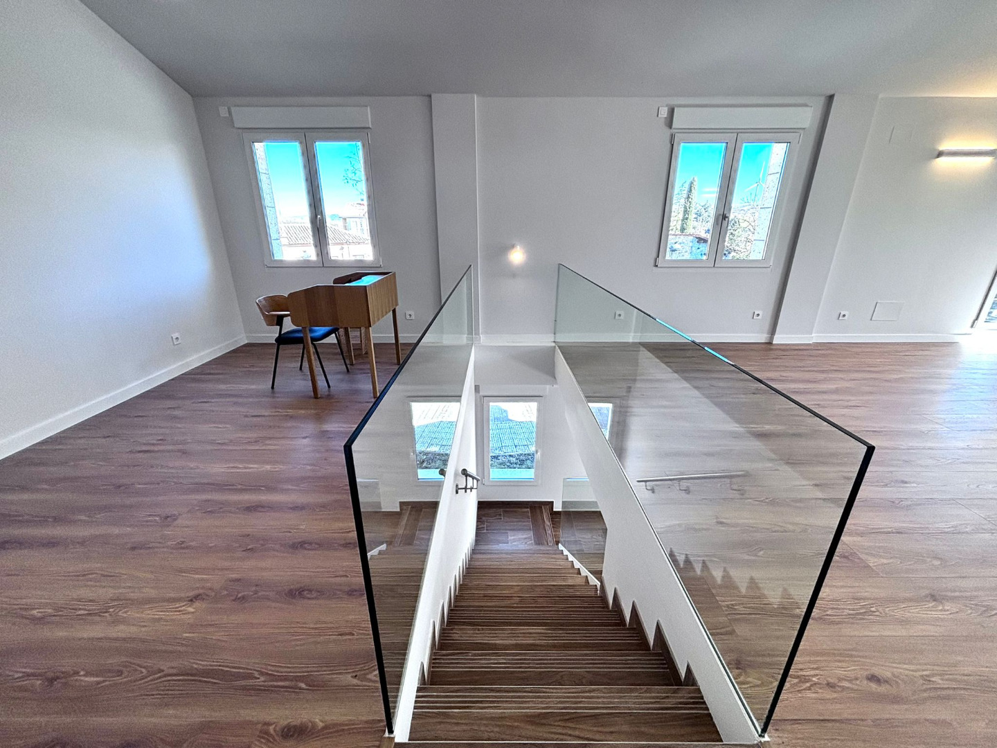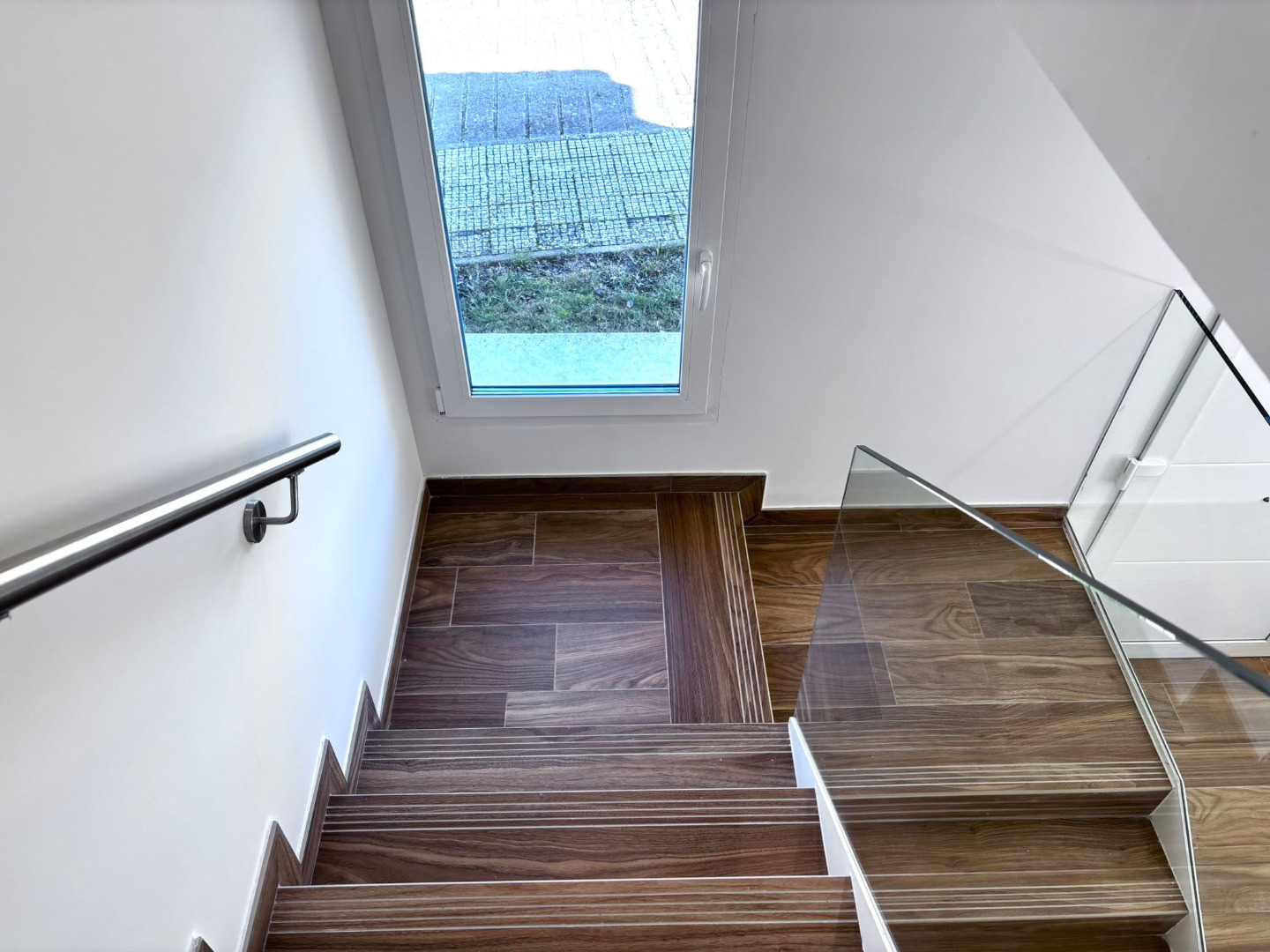 Suelos en pavimento laminado para tránsito intenso a la abrasión y gres porcelánico en zonas húmedas y de entrada con aislamiento.