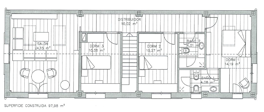 Zona abierta para 3 dormitorios y salón; actualmente con un baño completo con baño en suite más otro baño de cortesía todos de PORCELANOSA.