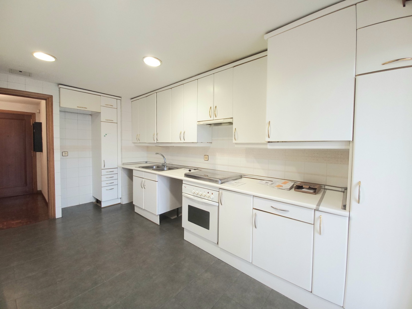 Amplia cocina equipada con gran espacio de almacenaje, diferenciándose zona de trabajo y comedor.